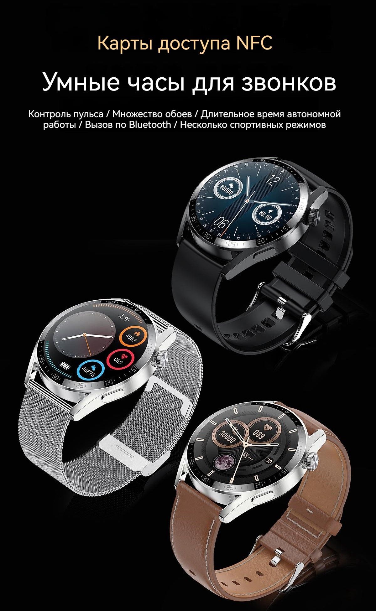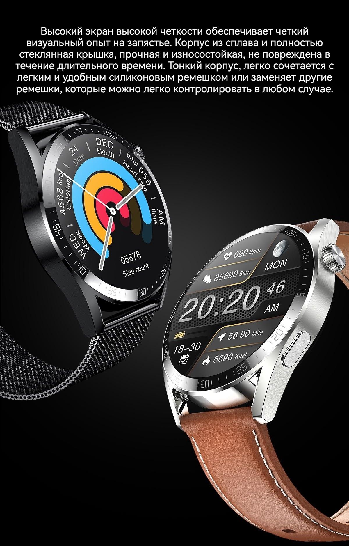 Умные часы NEXOVA Smartwatch / Bluetooth Calling / голосовой помощник AI / NFC / мониторинг сна / шагомер YD6034, 44mm, Черный (кожа)