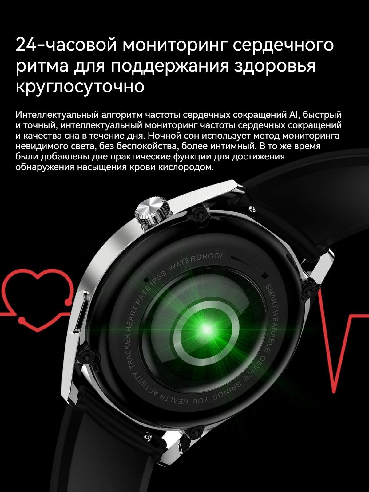 • мониторинг здоровья✅ 24-часовой фотоэлектрический мониторинг сердечного ритма и напоминание, интеллектуальный алгоритм AI работает быстро и точно