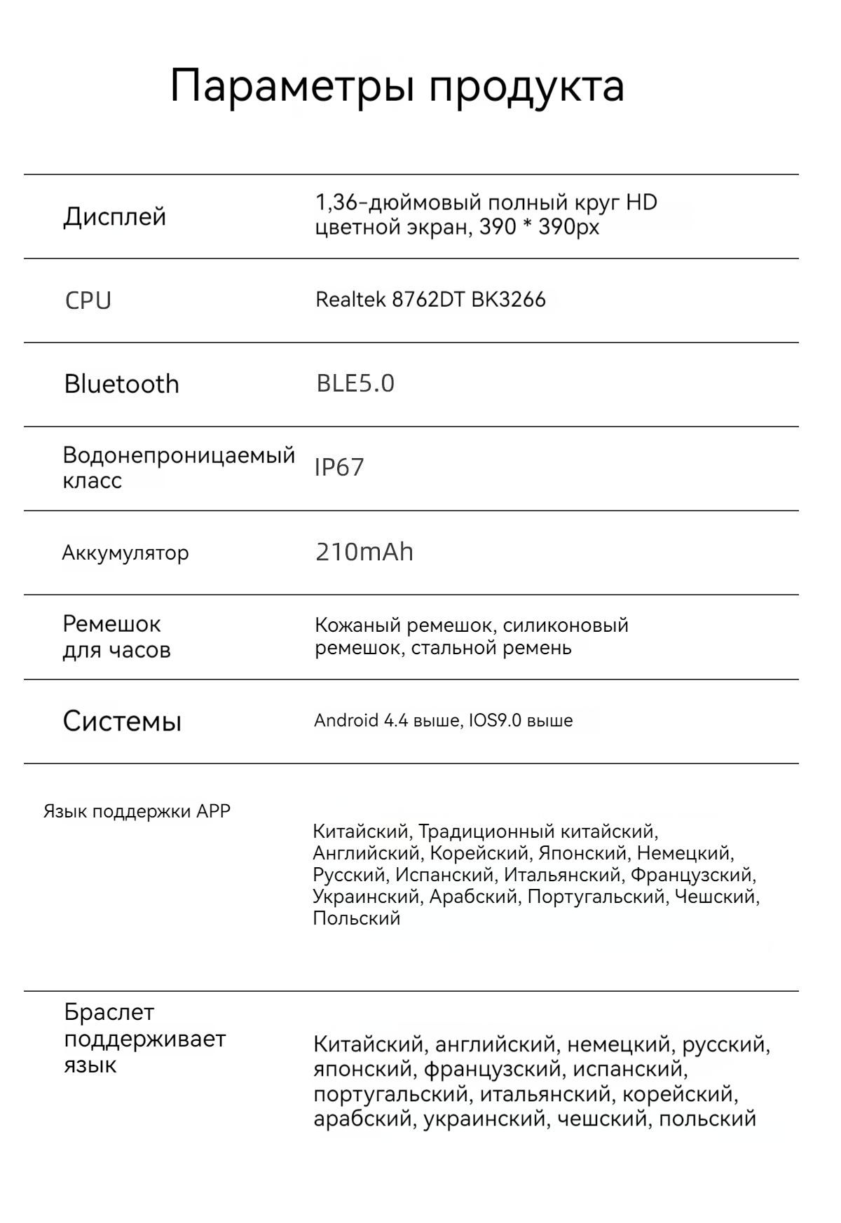 1* Наручные часы 1* Ремешок 1*Магнитный кабель для зарядки 1*Руководство пользователя