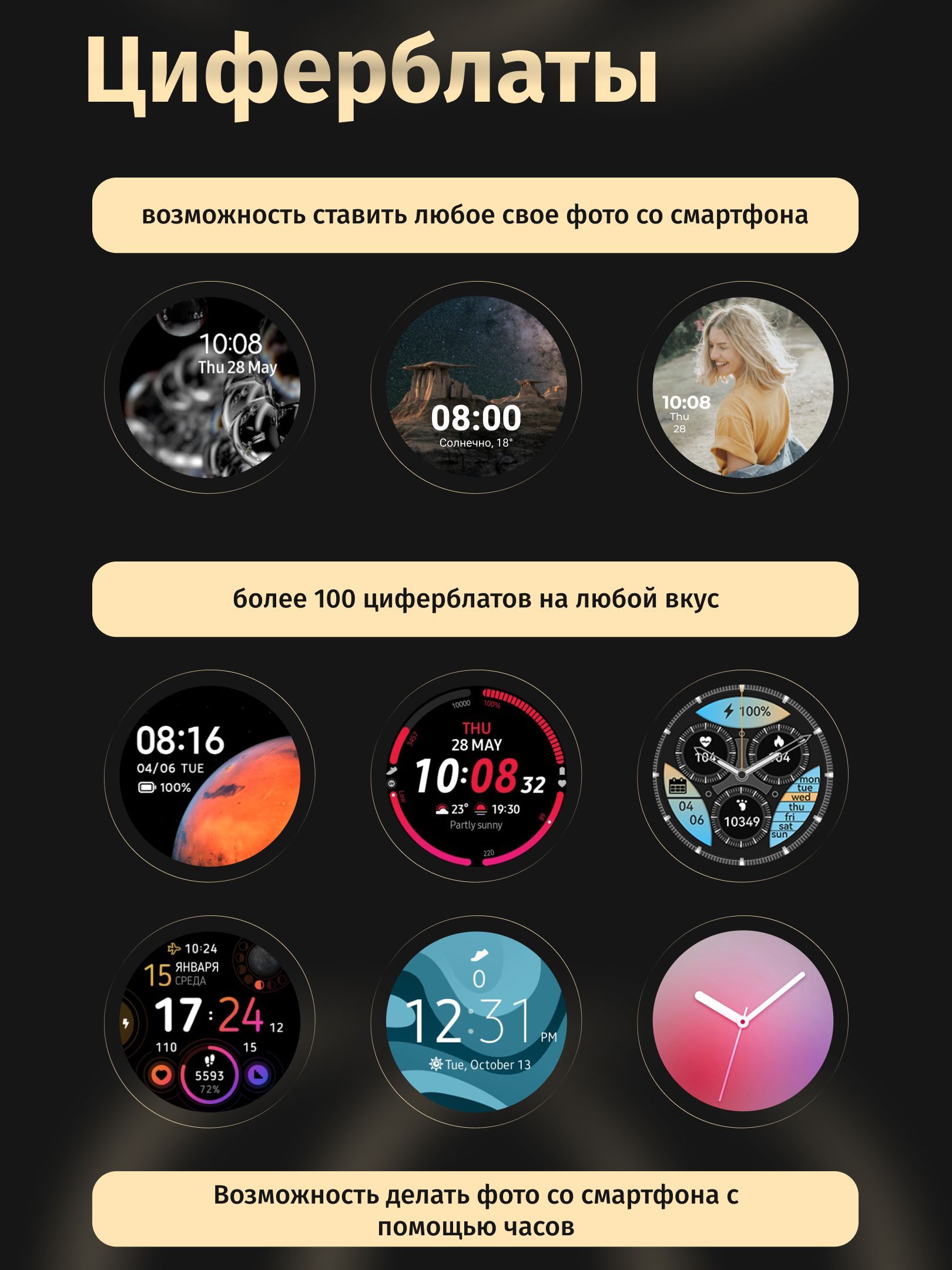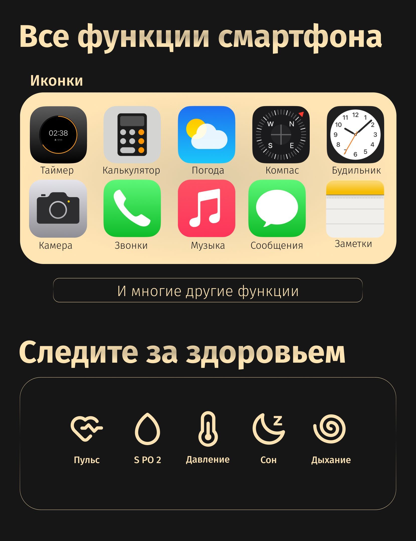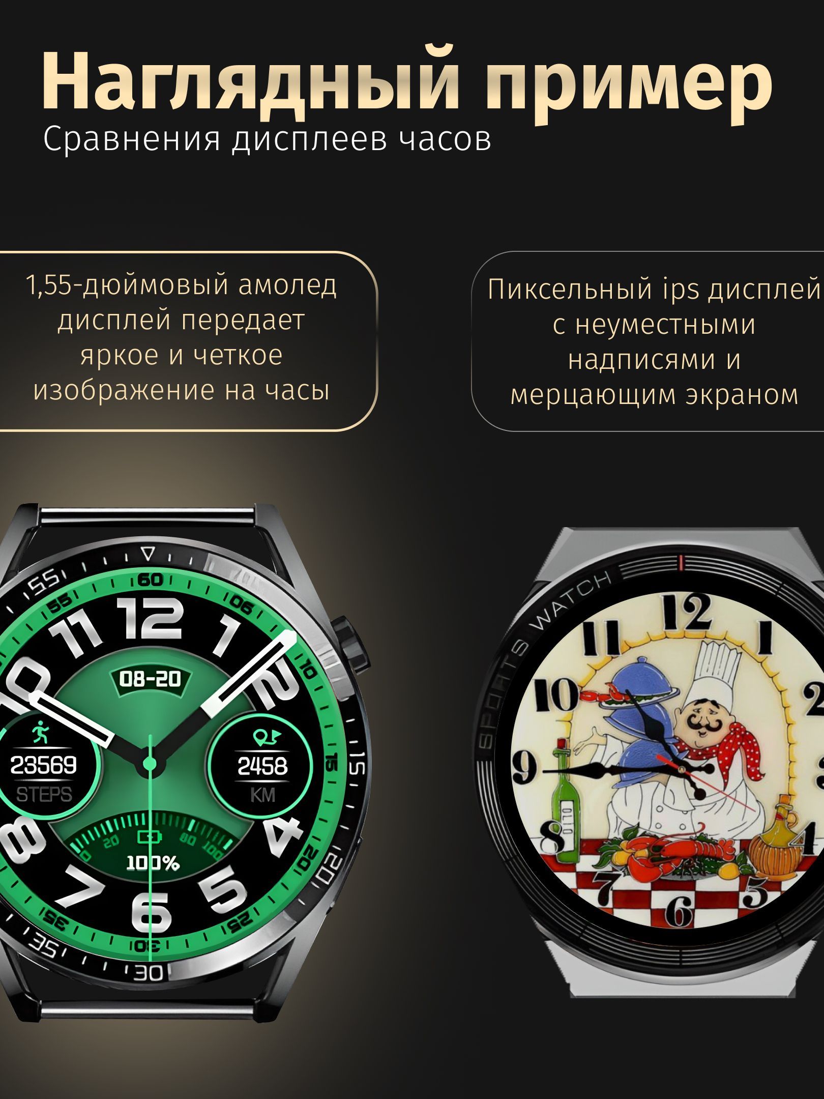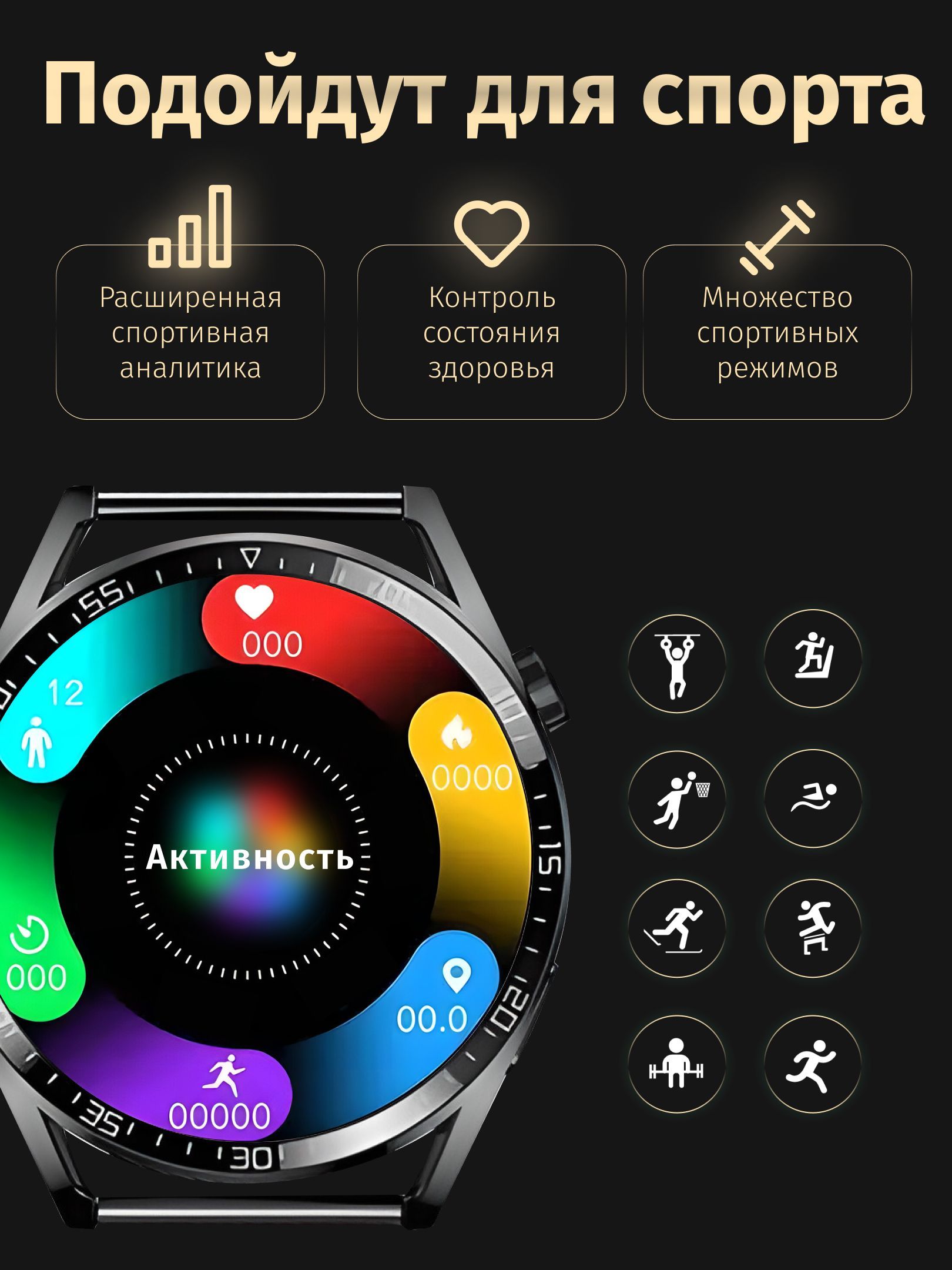 Премиальная серия смарт часов GT4 series  (новинка 2023 года) - это совершенно новые наручные смарт часы браслет шикарного дизайна и огромного функционала - от звонков и приема сообщений и уведомлений до контроля. Вашего состояния здоровья в реальном времени, а именно подсчета калорий, мониторинга сна, пульсометра, шагомера, измерения давления. и др. Часы электронные на руку отлично подходят как детские, так и мужские или женские наручные часы. В комплект входят - часы с ремешком, беспроводная зарядка, инструкция и гарантийный талон. Часы Smart watch произведены из крепкого алюминиевого корпуса и имеют степень защиты IP 68. Часы электронные принимают уведомления с мессенджеров и сообщения с телефона и являются отличным туристическим аксессуаром. С их помощью Вы можете говорить с собеседником, не вынимая телефон с кармана или сумки, ведь в них встроен очень хороший динамик и микрофон. Смарт-часы сопрягаются с телефонами с операционными системами IOS и Android. Это отличное дополнение к Вашей электронике. Привлекательный и минималистичный дизайн, позволяющий использовать фитнес часы наручные с любой одеждой и выбранным вами образом. Уверены, что вам придутся по нраву современные часы мужские спортивные от проверенного производителя. К часам легко пристегиваются съемные браслеты с надежной застежкой. 2 ремешка идут в подарок (силиконовый, металлический) так же можно приобрести отдельно кожаный ремешок и миланская петля. Стильные смарт часы мужские круглые, умные часы мужские очень красиво смотрятся на руке и подойдут для людей всех возрастов. Для настройки и удобного взаимодействия телефона со смарт часами разработано приложение, скачать которое можно считав QR код в часиках, в инструкции, либо на коробке. Наручные часы для мужчин, smart-часы - это полноценный фитнес браслет мужской, который имеет защиту от попадания пыли и влаги. Смарт часы с измерением давления очень надежные: корпус выполнен из высококачественного алюминиевого сплава, а циферблат из ударопрочных материалов. Эти часы телефон выбирают за плавную анимацию, быстрый сенсор, наличие калькулятора и мульти-спортивных режимов.