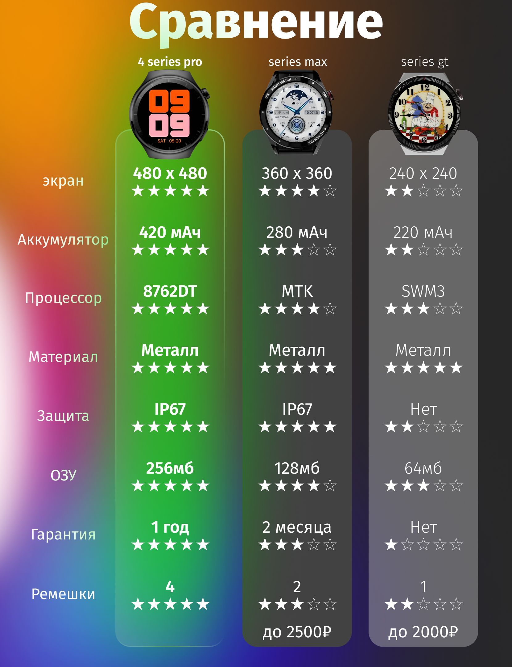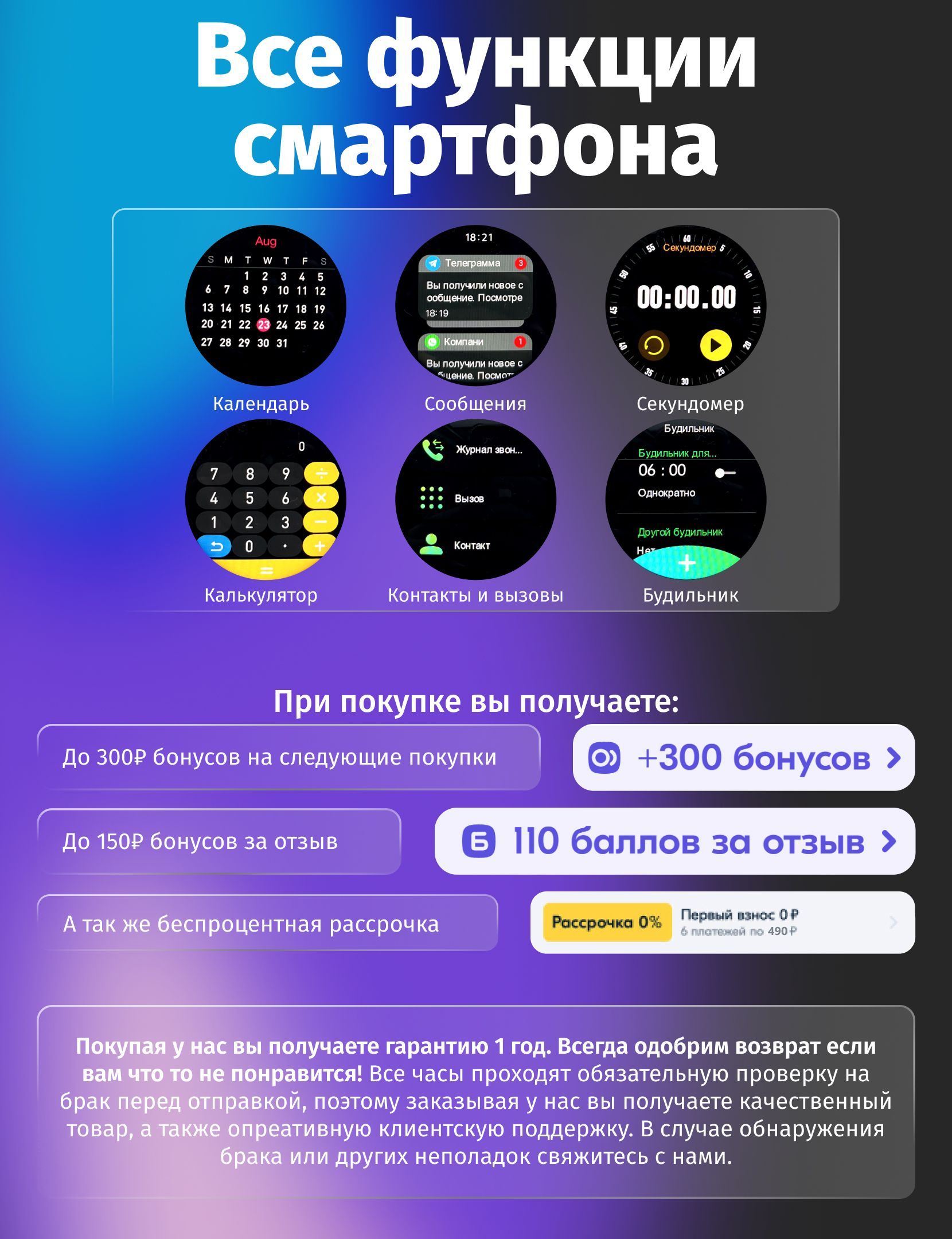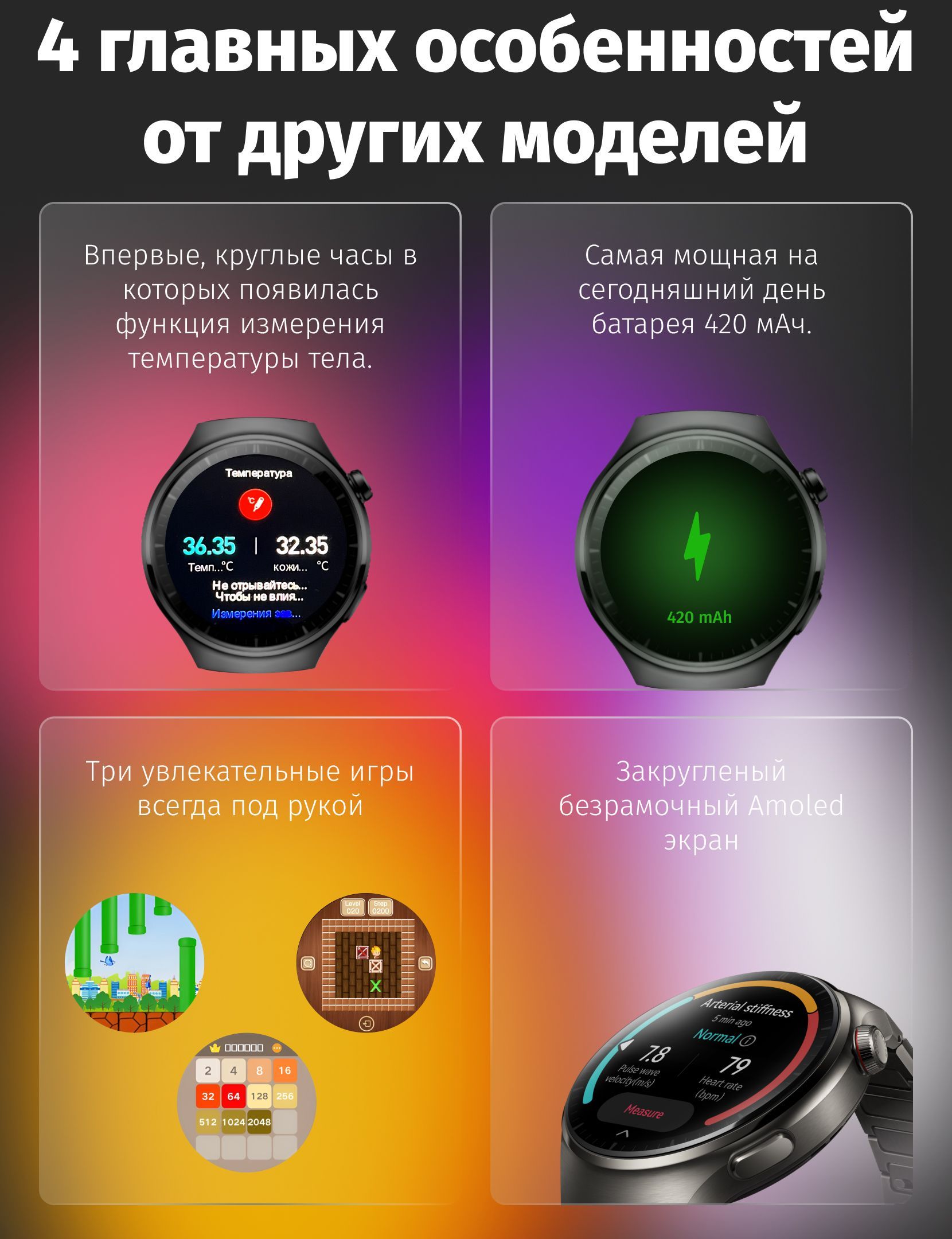 Описание: •Умные часы Premium 4 Pro, являются новинкой 2023 года. И по праву могут считаться самыми технологичными и универсальными смарт часами на сегодняшний день. Это первая модель SmartWatch в комплекте к которой идут четыре ремешка. А так же компас, 3 игры, измерение температуры тела. Полная кастомизация часов. Огромный выбор режимов и более 100 бесплатных циферблатов.