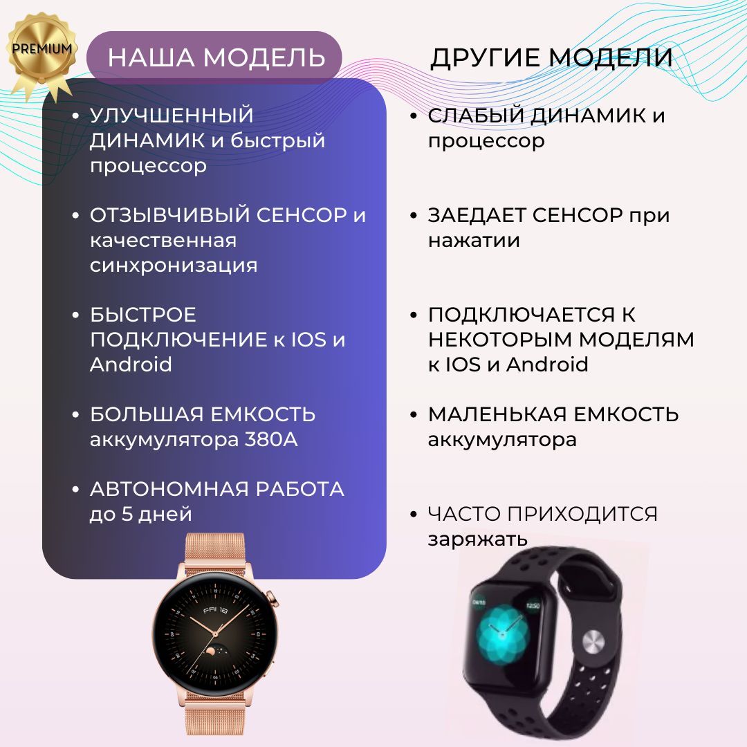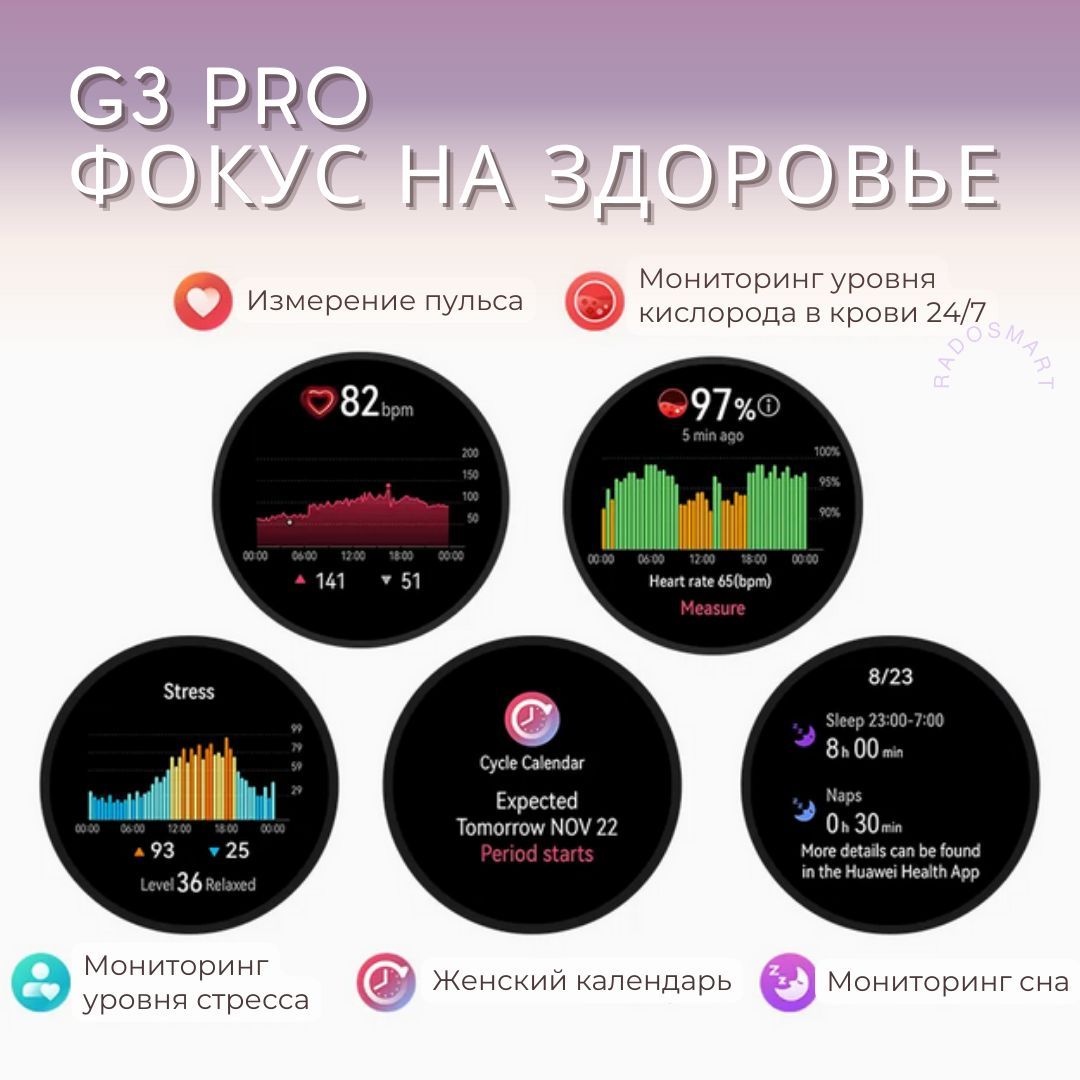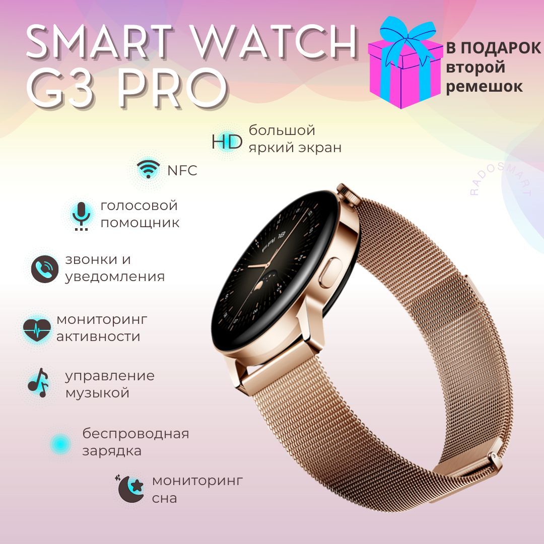 Умные часы Radosmart Смарт часы мужские умные smart watch G3 Pro часы наручные мужские, смарт часы женские смарт-часы фитнес браслет шагомер Bluetooth/ GPS/ NFC, 42mm, розовое золото, золото