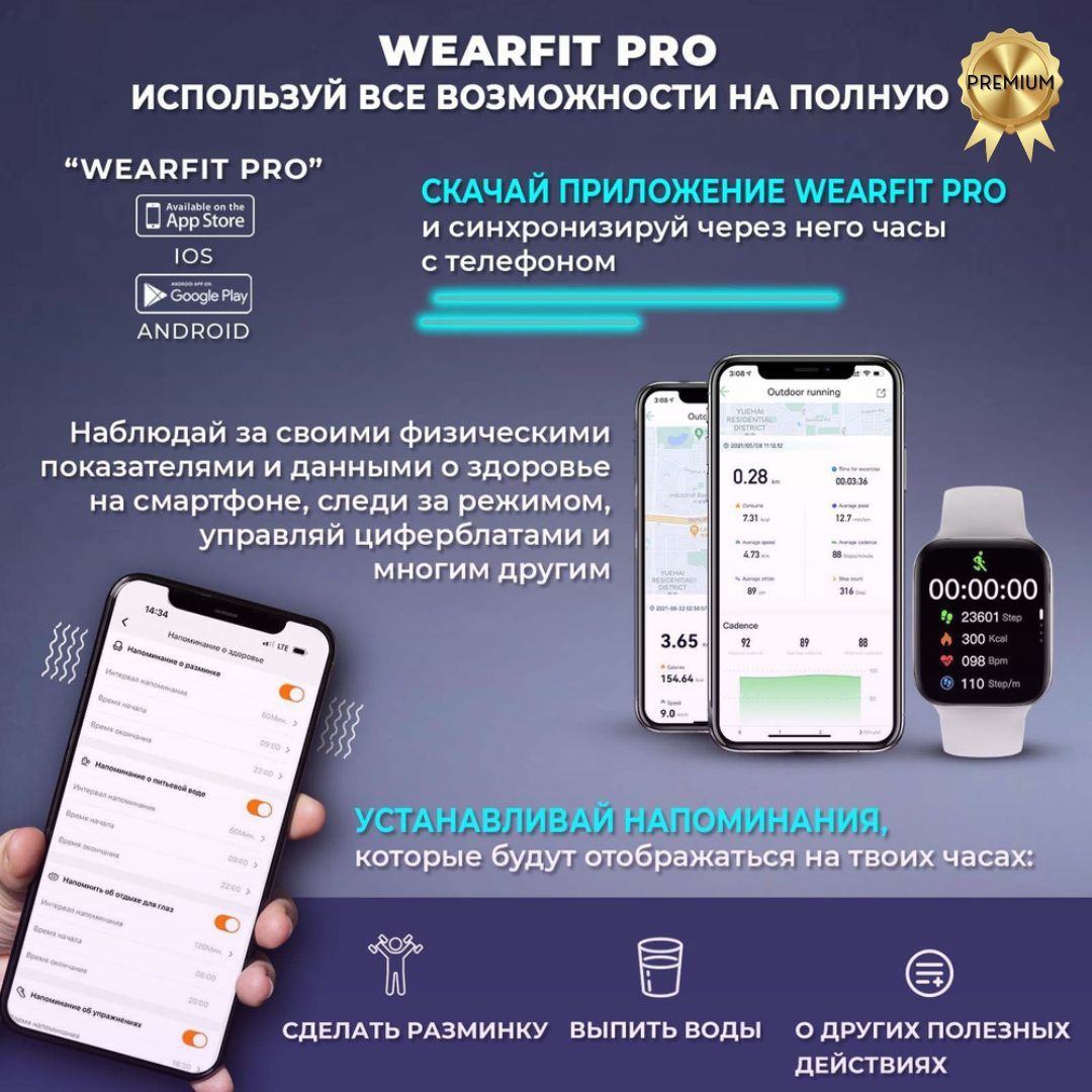 Встроенные датчики: Датчик артериального давления, Датчик движения, Датчик приближения, Датчик уровня кислорода в крови, Компас, Пульсометр, Счетчик калорий, Уровень гидратации, Шагомер