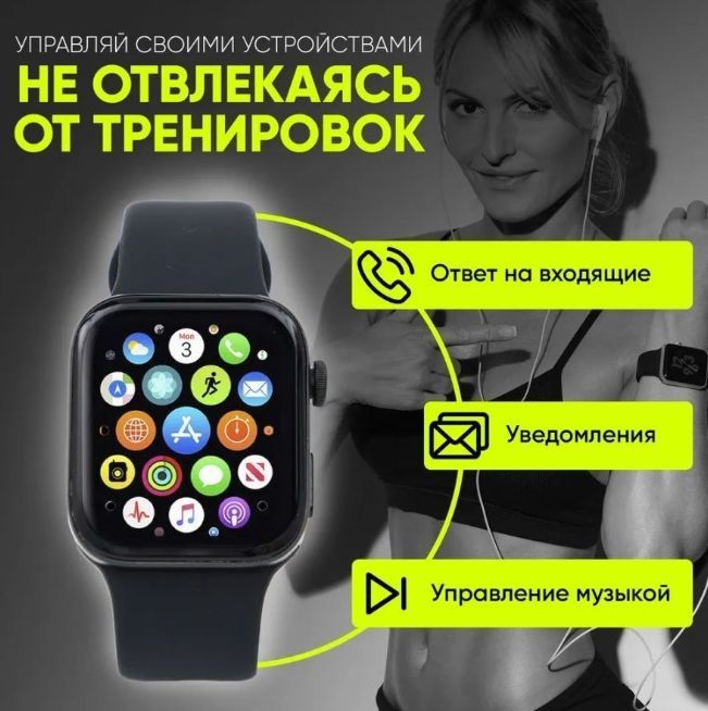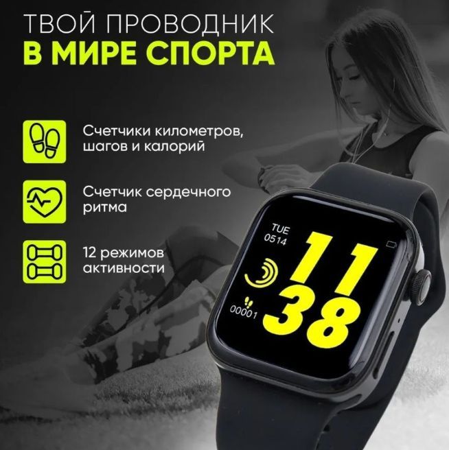 Умные часы Rebborn Смарт-часы i8 pro max / Smart watch 8 серии / Умные часы для детей, мужчин, женщин, 44mm, черный