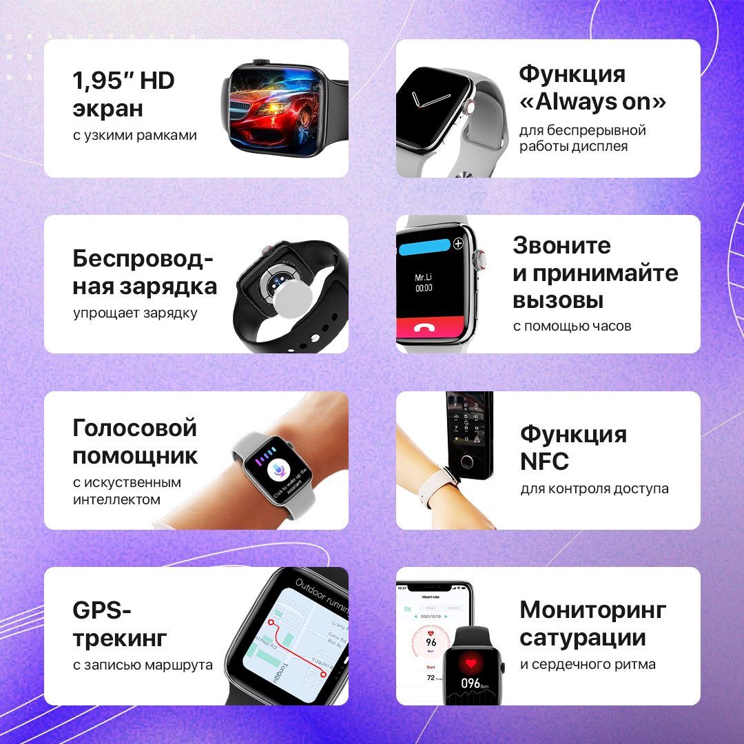 Описание: Умные часы Smart Watch Series 7Беспроводная зарядка, NFC, GPS-трекер, сатурация, голосовой помощник с AI и множество других функцийДВА РАЗМЕРАДЛЯ ВЫБОРА МОДЕЛИ НАЖМИТЕ НА ИЗОБРАЖЕНИЕумные часы 7 серии41 mm1,59" HD ЭКРАН (32 бит)