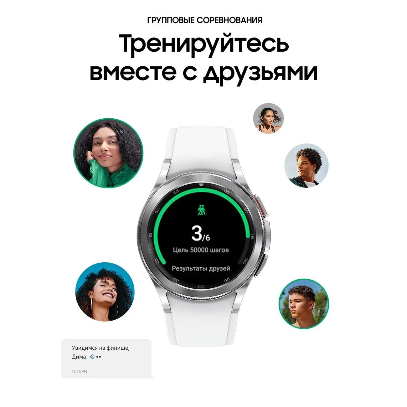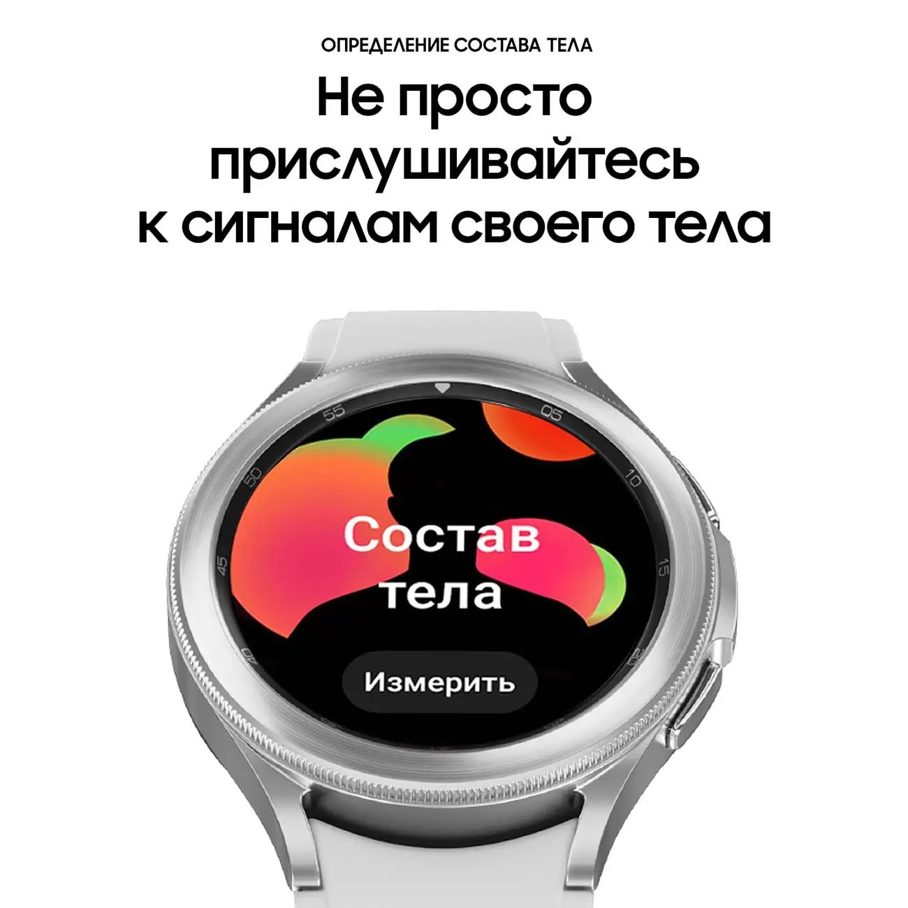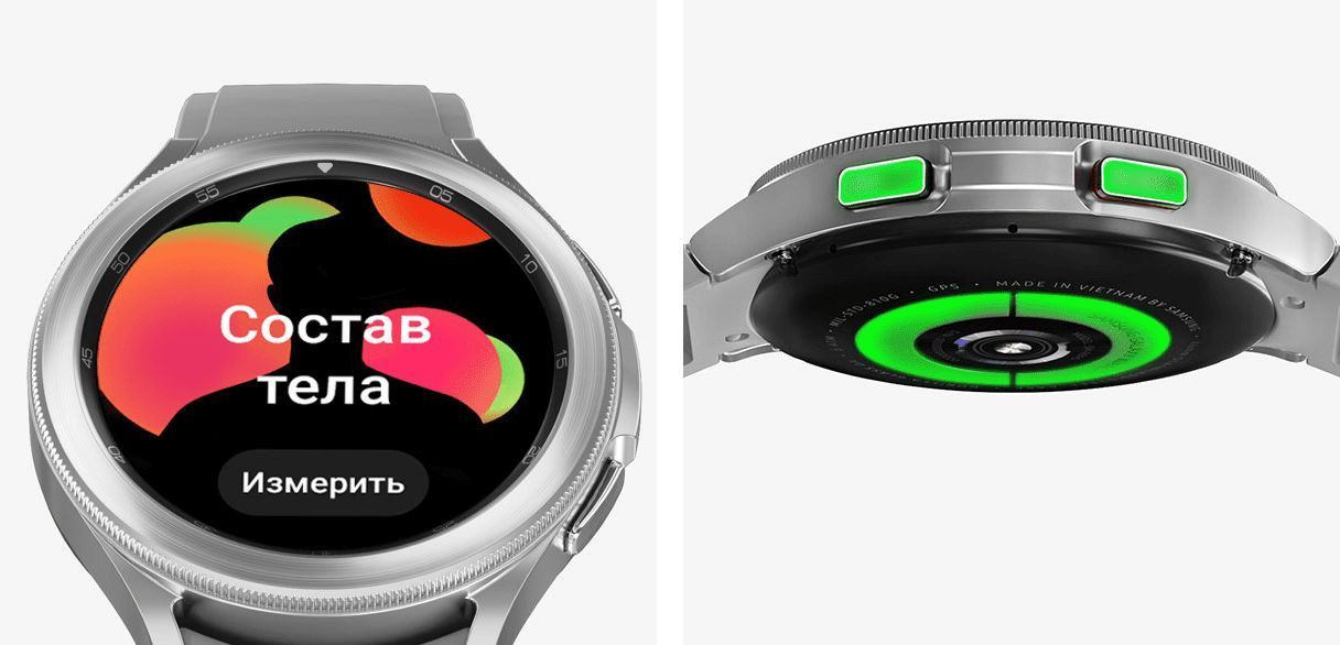 Не просто прислушивайтесь к сигналам своего тела. Познакомьтесь с ним поближеОПРЕДЕЛЕНИЕ СОСТАВА ТЕЛАОтслеживайте свою активность и фитнес показатели на Galaxy Watch и смартфоне. Считайте количество пройденных шагов, проверяйте расход калорий и прокладывайте маршрут при помощи GPS. Galaxy Watch4 определяют и отслеживают вашу физическую активность, а также поддерживают более 90 упражнений для составления более точного отчёта о результатах ваших тренировок.*Не используйте при наличии имплантируемых кардиостимуляторов или иных медицинских устройств.**Не используйте при беременности.***Результаты измерений могут быть неточными для пользователей младше 20 лет.****Предназначено для использования при занятиях фитнесом и оценке общего физического состояния. Не предназначено для выявления, диагностики, лечения каких-либо заболеваний. Результаты измерения предназначены только для вашего личного ознакомления. Пожалуйста, обратитесь за консультацией к квалифицированному медицинскому специалисту.*****Доступность функции БИА может отличаться в зависимости от страны и региона.******Все функции и пользовательский интерфейс могут быть изменены.Получите результат биоимпедансного анализа (БИА) тела всего лишь за 15 секунд. В любое время и в любом месте. Новый датчик Samsung BioActive способен определить состав вашего тела в режиме реального времени, что позволит вам отслеживать динамику на пути к своей цели.*Не используйте при наличии имплантируемых кардиостимуляторов или иных медицинских устройств.**Не используйте при беременности.***Результаты измерений могут быть неточными для пользователей младше 20 лет.****Предназначено для использования при занятиях фитнесом и оценке общего физического состояния. Не предназначено для выявления, диагностики, лечения каких-либо заболеваний. Результаты измерения предназначены только для вашего личного ознакомления. Пожалуйста, обратитесь за консультацией к квалифицированному медицинскому специалисту.*****Доступность функции БИА может отличаться в зависимости от страны и региона.******Все функции и пользовательский интерфейс могут быть изменены.Выберите вид тренировки. Остальное Galaxy Watch сделают за васОтслеживайте свою активность и фитнес показатели на Galaxy Watch и смартфоне. Считайте количество пройденных шагов, проверяйте расход калорий и оставайтесь на связи при помощи GPS. Galaxy Watch4 Classic определяют и отслеживают вашу физическую активность, а также поддерживают более 90 упражнений для составления более точного отчёта о результатах ваших тренировок.*Galaxy Watch4 Classic обладают стандартом защиты IP68, который основан на испытаниях с погружением в пресную воду на глубину до 1,5 метров до 30 минут.Добавьте ещё больше мотивации — тренируйтесь вместе с друзьямиНаслаждайтесь своим прогрессом вместе с друзьями и семьёй при помощи Galaxy Watch4 Classic. Отслеживайте количество пройденных шагов и сравнивайте с результатом друзей в режиме реального времени. Получайте памятные значки и баллы в Групповых соревнованиях — сделайте свои тренировки более интересными, мотивирующими и интерактивными.Гаджет, который позаботится о вас