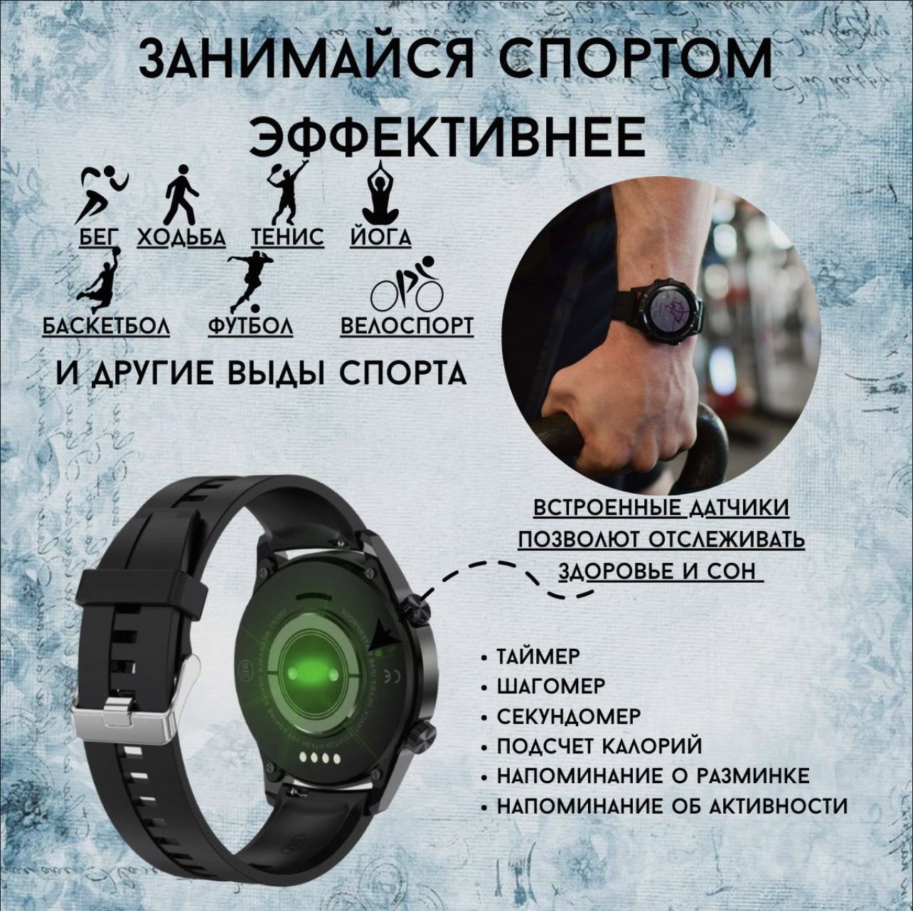 Описание: Умные часы помогают контролировать такие функции как: длительность сна и его качество, давление, количество пройденных шагов и расстояние, пульс, количество сожженных калорий. Smart часы уведомляют о входящих сообщениях и звонках.Удобный дисплей с большим экраном и отзывчивым сенсором позволяет максимально эффективно использовать аксессуар.Смарт часы можно использовать для управления камерой, плеером, журналом вызовов и смс на подключенном телефоне.Гаджет легко синхронизируется с мобильным устройством посредством Bluetooth, подключаясь к смартфонам, работающим на базе Android или iOS.