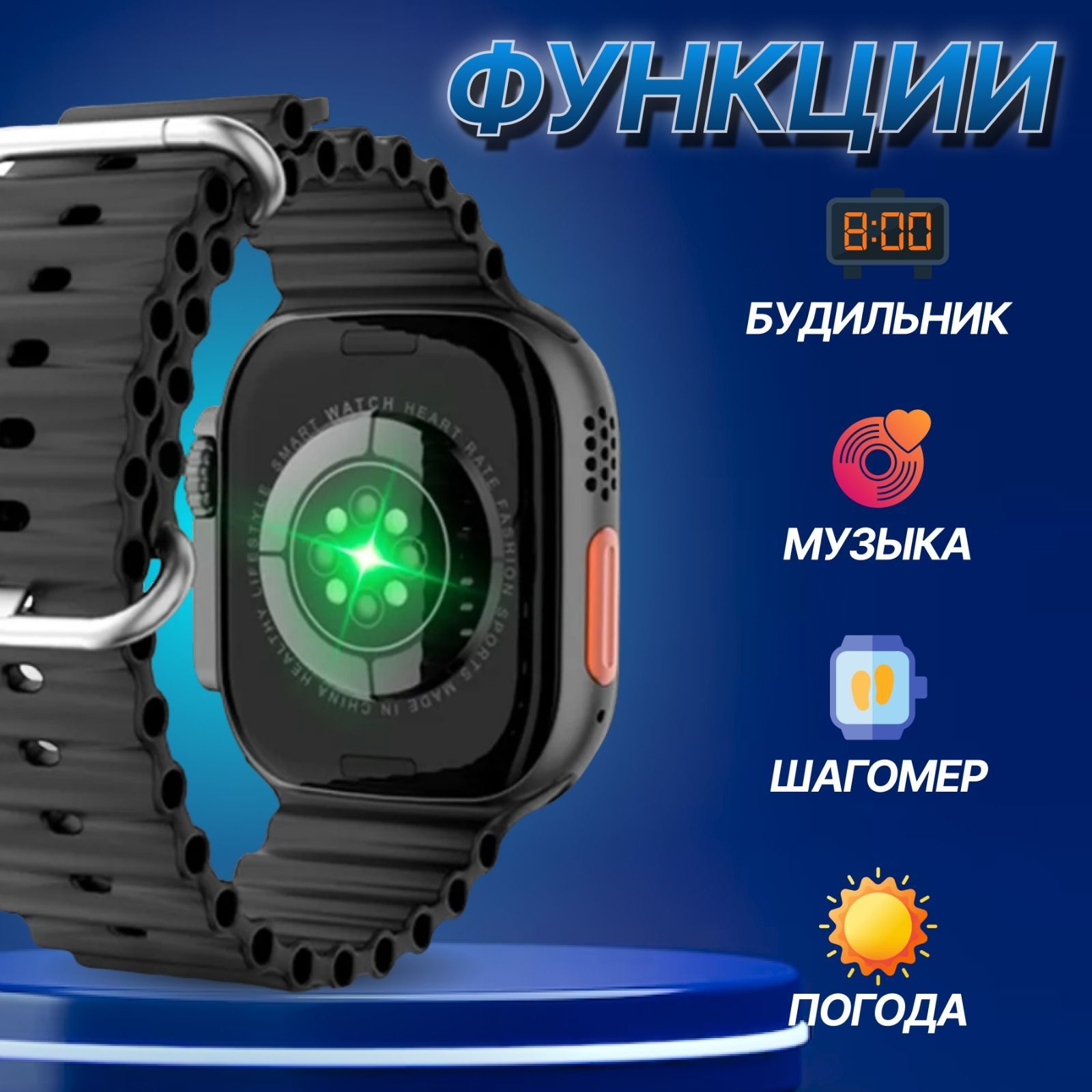 Описание: Смарт часыSmart watch - это не просто наручные часы. Это многофункциональный гаджет. Умные часы - упрощают жизнь активному современному человеку, который ценит свое время и не сидит на месте. Женские наручные часы помогают нам, когда нет возможности взять смартфон, посмотреть или ответить на сообщения. Так же часы наручные мужские следят за нашим здоровьем, благодаря встроенным датчикам. В наше время это один из самых популярных товаров на рынке. Смарт часы мужские подходят для Apple и Android. КачествоЧасы с сим картой имеют высококачественный динамик. Долгое время работают без подзарядки, то что нужно активному человеку, решающему многие вопросы по телефону. Спортивные режимы порадуют мужчин и женщин, любящих спорт, а так же удобны для тренеров, фитнес-инструкторов. Безрамочный дисплей заметно приятен для глаз. Ну и конечно крепкий корпус обеспечивает первозданный вид smart часов на долго время.ФункцииБудильник - одна из самых популярных и нужных функций. Ведь большинство людей просыпаются на работу по будильнику. Так же это отличная напоминалка, которая всегда на руке. Для людей, которые посещают тренировки наличие музыки очень даже кстати. Ведь телефон не всегда удобно взять с собой, а смарт часы унисекс всегда с собой. Еще одна функция часов смарт очень нравится любителям пеших прогулок, либо тем, кто любит бегать по утрам - шагомер. А функция погоды всегда подскажет как одеться, нужно ли брать с собой зонтик или поможет спланировать свои выходные,Беспроводная зарядкаВзрослые смарт watch имеют беспроводную зарядку. Очень здорово, когда нужно просто взять или положить часы, не оставляя висеть провода, и не вставлять каждый раз штекер. ВлагозащитаФункция влагозащиты на smart часы женские наручные подойдет любителям спорта. В smart watch можно умываться, мыть руки. а еще им не страшен дождь и снег.