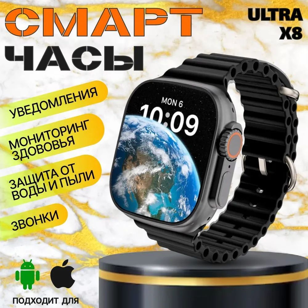 Умные часы смарт часы взрослые, 49mm, черный