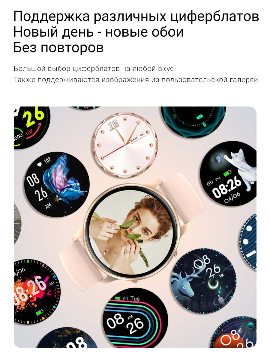 • Сменные циферблаты (возможность загрузить своё фото)