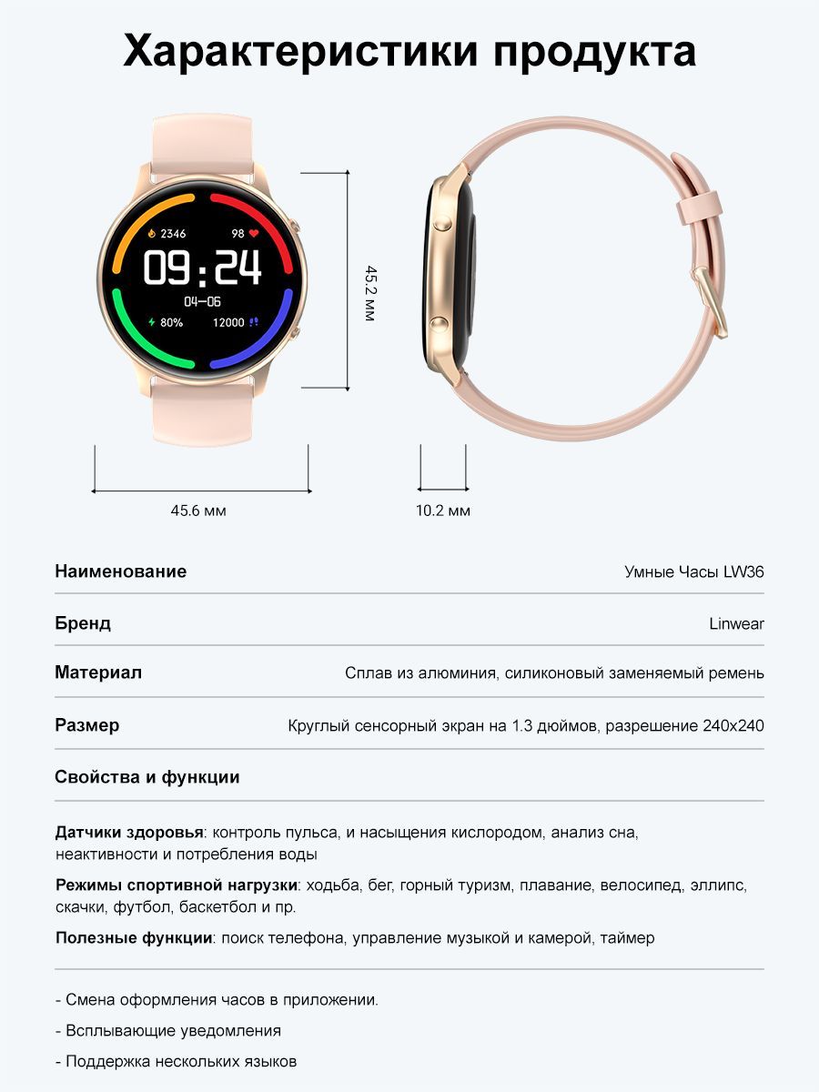 Описание: Стильная популярная модель смарт-часов Smart Watch LW36 (обновленная версия) c функциями для отслеживания своего здоровья, также с функциями фитнес-трекера и получения уведомлений о звонках и сообщениях, которые приходят на телефон.