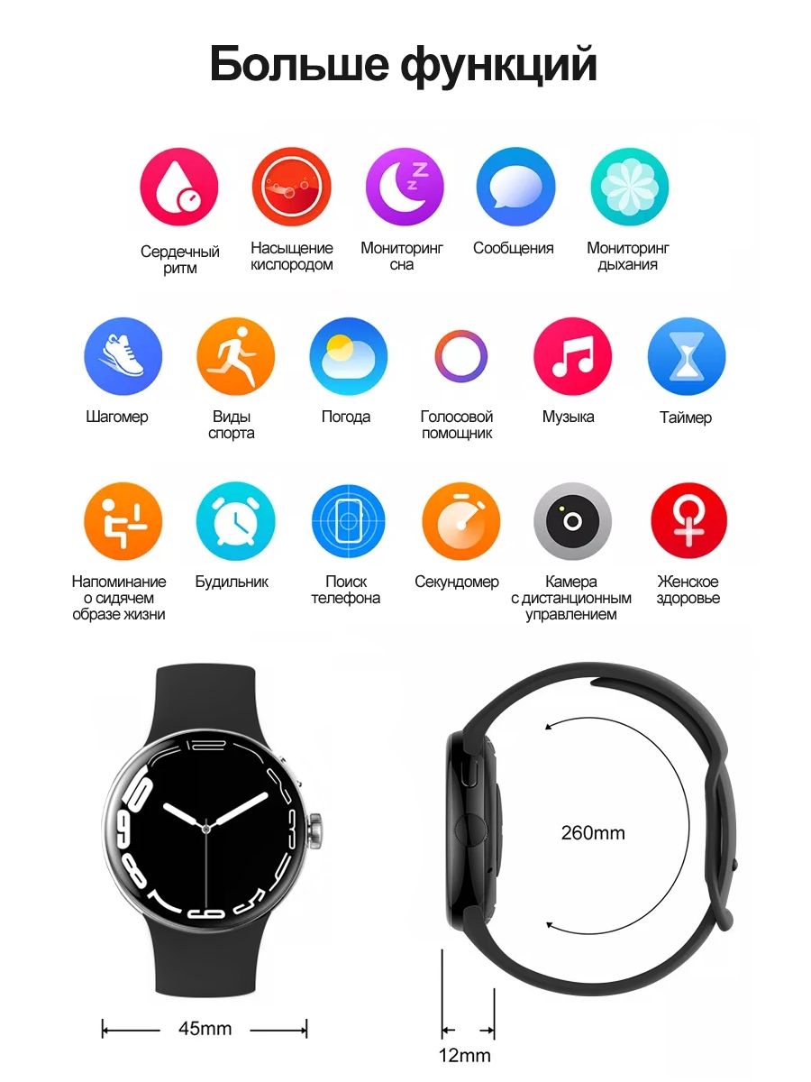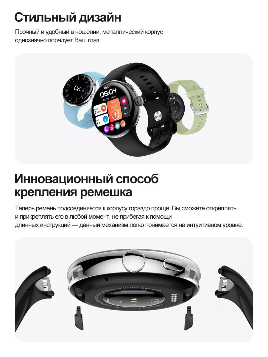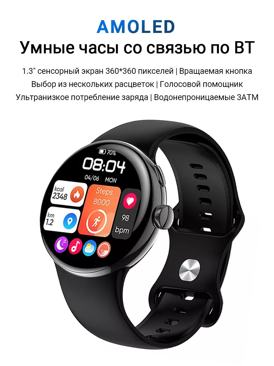 Описание: Совершенно новые смарт часы Smart Watch LA24 с функциями телефона, блютуз-звонков, отслеживания своего здоровья, также с функциями фитнес-трекера и получения уведомлений о звонках, сообщениях и уведомлений от приложений, которые приходят на телефон. Смарт-часы оснащены большим дисплеем 1.3″ AMOLED с высоким разрешением 360х360 px и новейшей технологией матрицы.