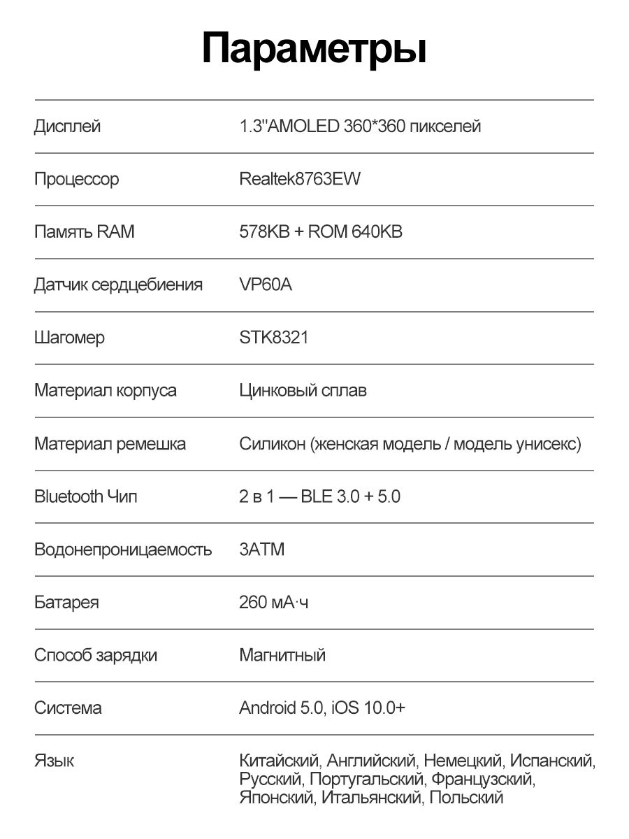 • Язык интерфейса часов и приложения: Русский (английский и другие)