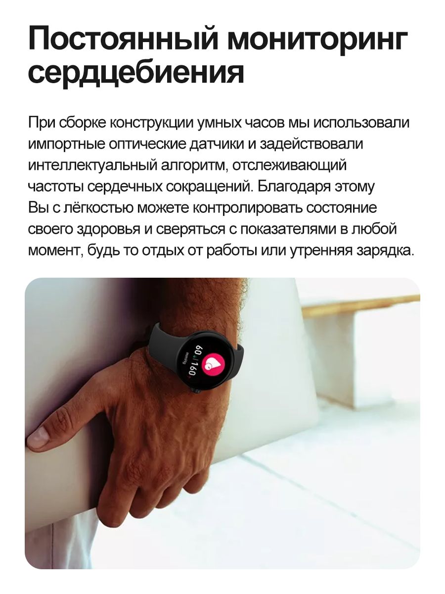 • Модель умных часов сочетает в себе современный и деликатный дизайн, сочетающий в себе практичность и легкость. Толщина корпуса всего 12 мм.