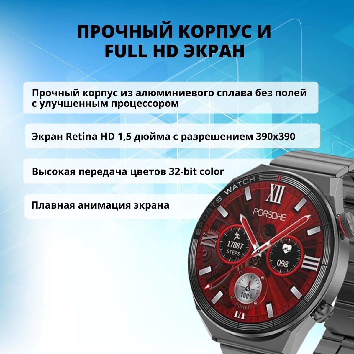 Текст при отключенной в браузере загрузке изображенийСтильный корпус Smart Watch изготовлен из высококачественного алюминиевого сплава. Мощный процессор с чипом нового поколения обеспечивает плавную работу анимации.