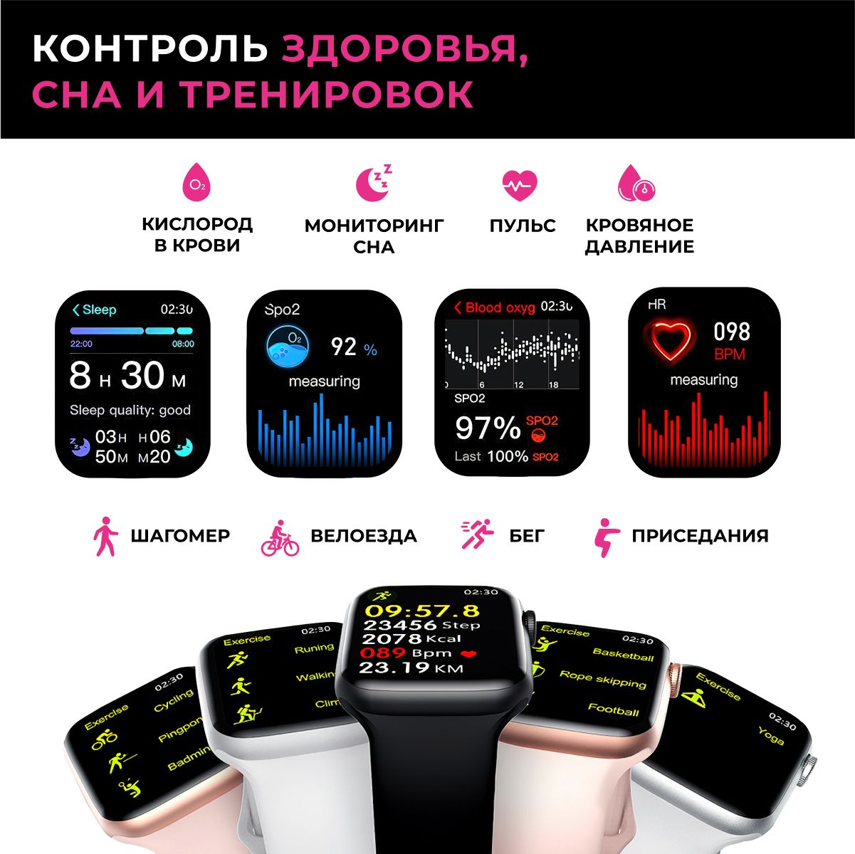 Мониторинг: Усвоения калорий, Сердечного ритма, Сна, Физической активности
