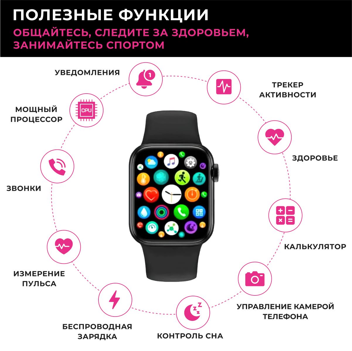 Умные часы Smart Watch 8 Series / 8ой серии i8 Pro max Bluetooth, 44mm / Смарт часы мужские, женские, детские / Фитнес браслет / Фитнес часы наручный, спортивный / Часы телефон, смартфон (Русский интерфейс)