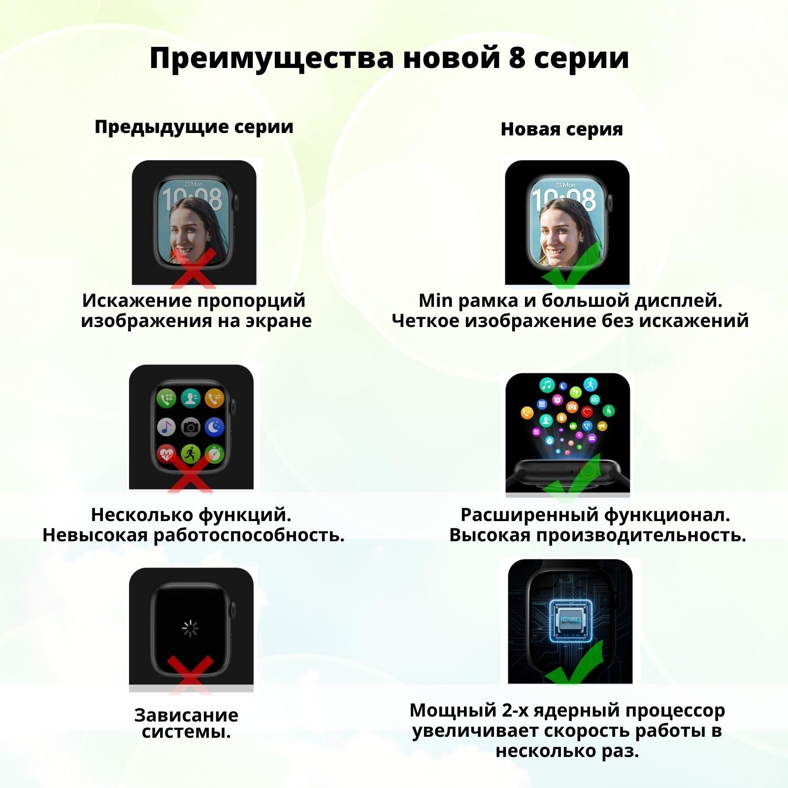 Новый производительный процессор обеспечивают ультра - быструю работу сенсора и плавную работу анимации умных часов.