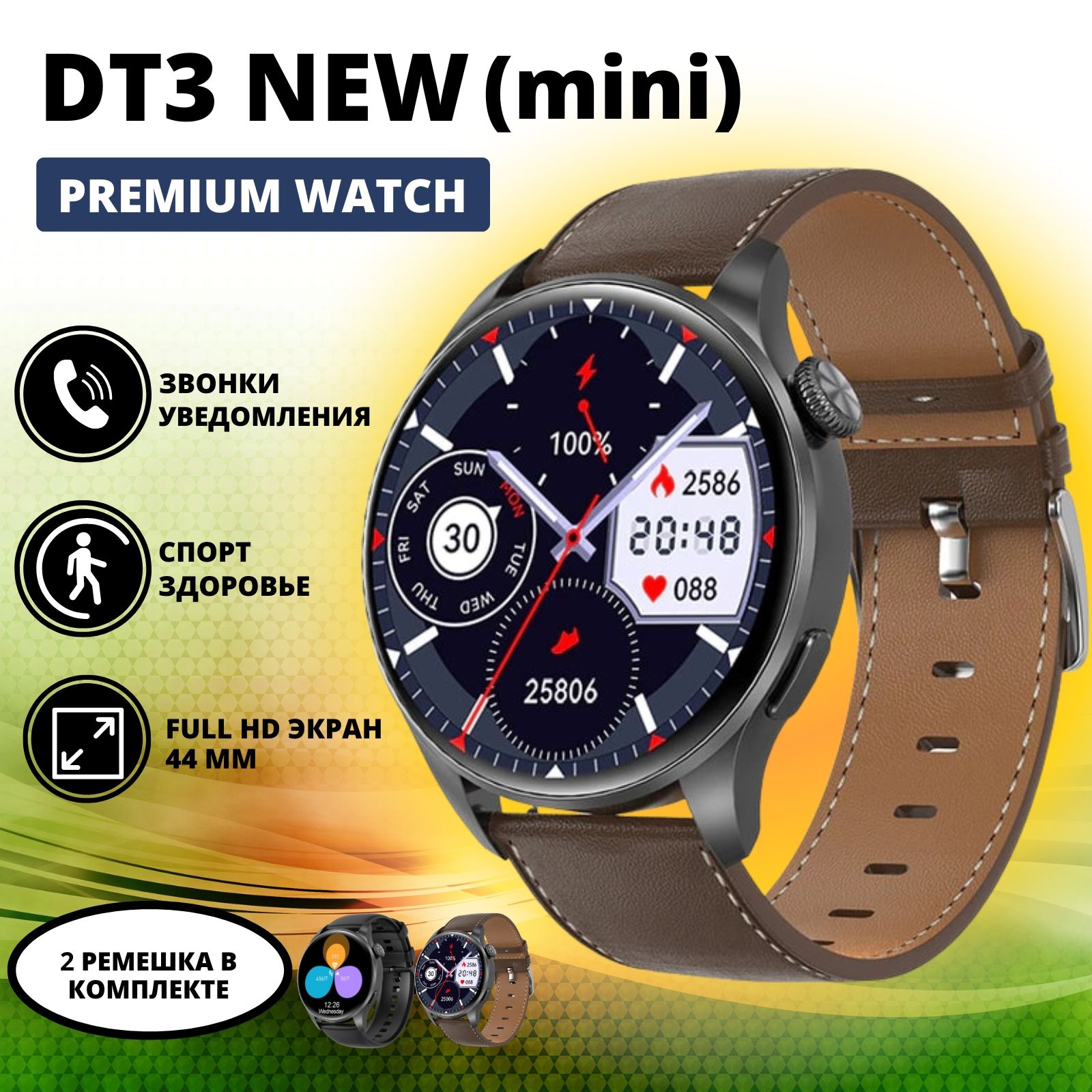 Умные часы Smart Watch DT No.1 DT3 NEW mini, умные часы круглые, смарт часы женские, мужские, спортивные, фитнес часы , детские 44 мм, черный