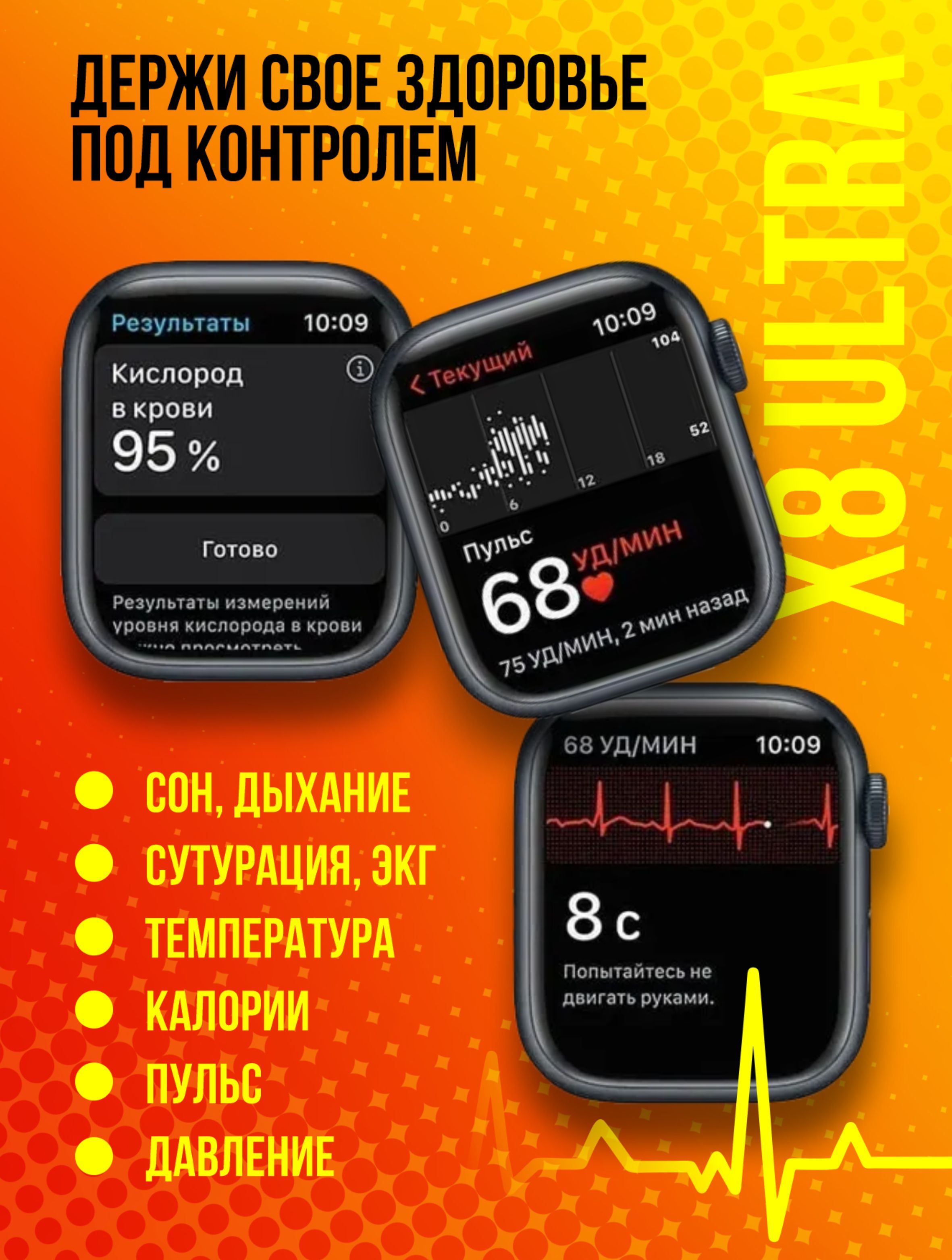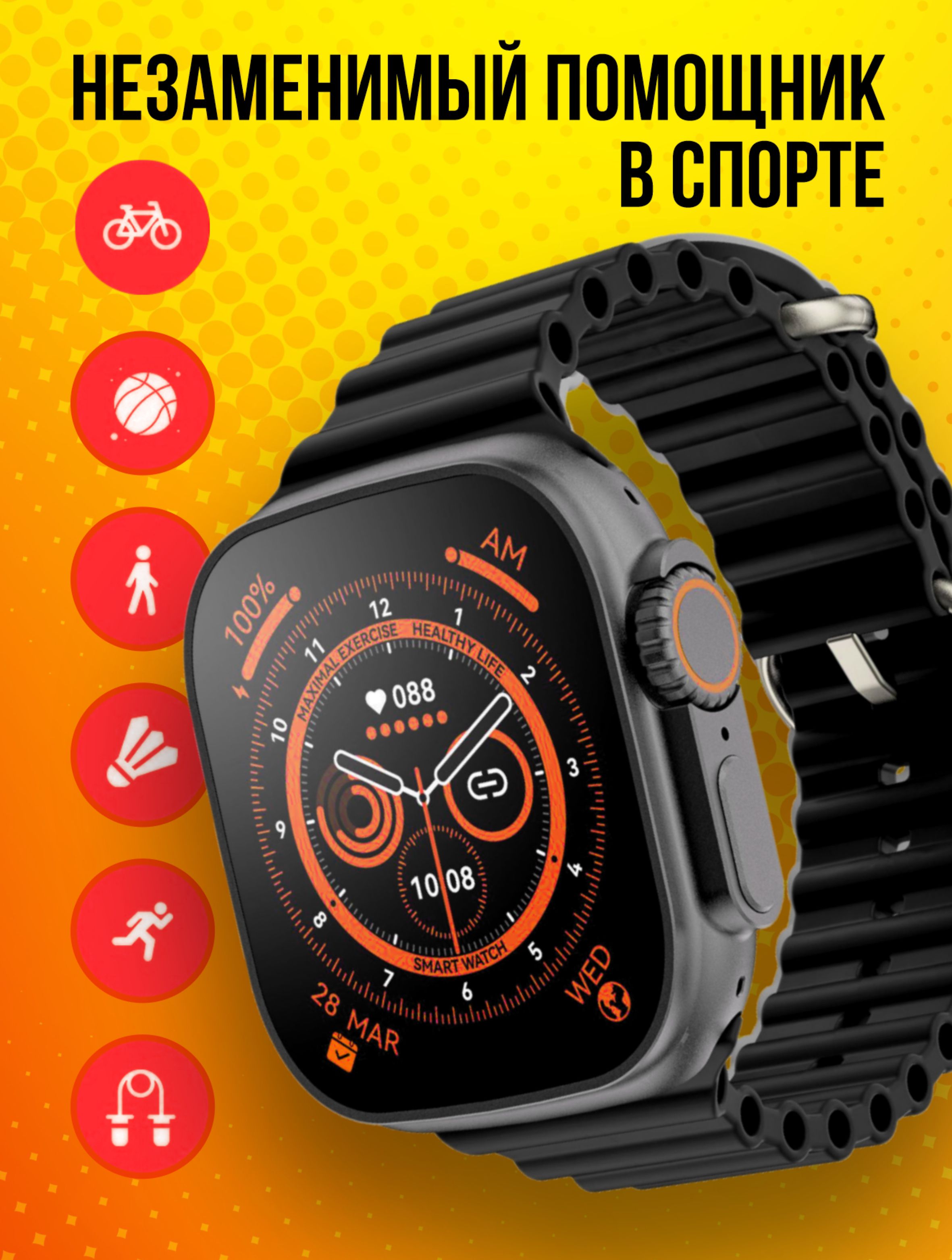 Описание: Одна из самых невероятных новинок мира - Smart Watch 8 Ultra. Сногсшибательное качество товара, чрезвычайно популярный узнаваемый - дорогой внешний вид. Гарантия легкого возврата ! Полная комплектация. Ударопрочное стекло, металл ! Полный функционал. Яркий дисплей, прочный корпус, продуманное управление и специальные спортивные ремешки за счет которых вы всегда можете менять дизайн, стиль часов: все для тех, кто не привык останавливаться на достигнутом. Элементы управления стали крупнее. Теперь можно с комфортом пользоваться смарт-часами даже в гидрокостюме или теплых перчатках. Настройте управление по своему вкусу, вынеся на главный экран самые нужные функции, определите назначение основной кнопки. Время автономной работы смарт-часов — до 36 часов в обычном режиме или до 60 часов в энергосберегающем. Они работают в диапазоне от -20 °С до +55 °С — выдерживают экстремальные погодные условия. Дополнительно переосмыслены стандартные приложения. Теперь отслеживать личные рекорды, проложить быстрый маршрут домой или обеспечить безопасность стало еще проще ! Все это - именно в этих невероятных новых часах Smart Watch Series Ultra.