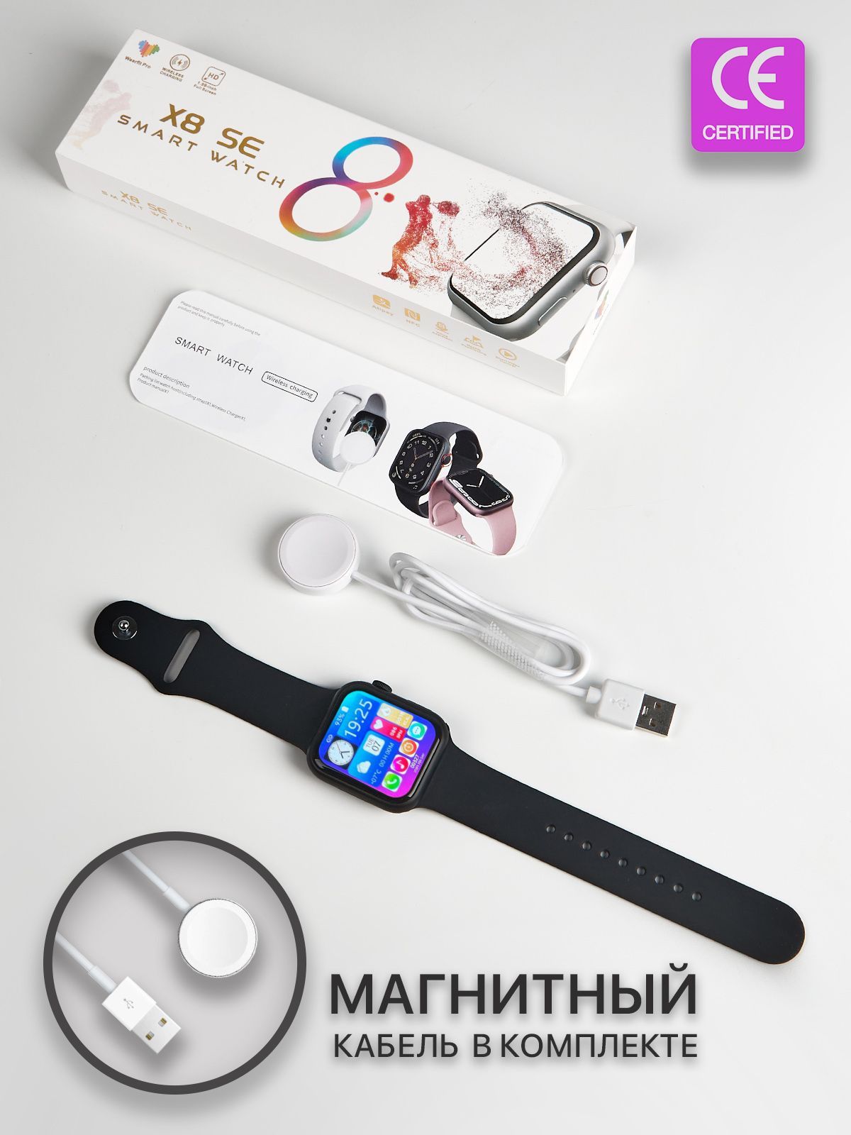 смарт часы,силиконовый ремешок,беспроводная зарядка,инструкция на английском