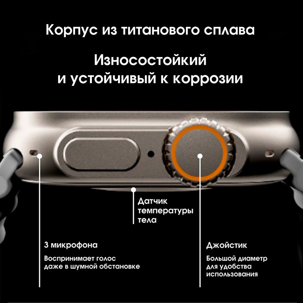 Умные часы Smart Watch X8+ Ultra оснащены 49 мм безрамочным сенсорным дисплеем на IPS матрице, благодаря чему изображение не гаснет, не искажается и не меняет цвета ни под каким углом. Привлекательная форма, универсальное и лаконичное оформление часов смарт позволяют использовать их умные часы мужские и женские. Вы можете менять внешний вид, используя на выбор около 500 вариантов дисплея, которые устанавливаются через приложение. Благодаря этому, часы наручные женские можно за несколько секунд превратить в часы мужские смарт.