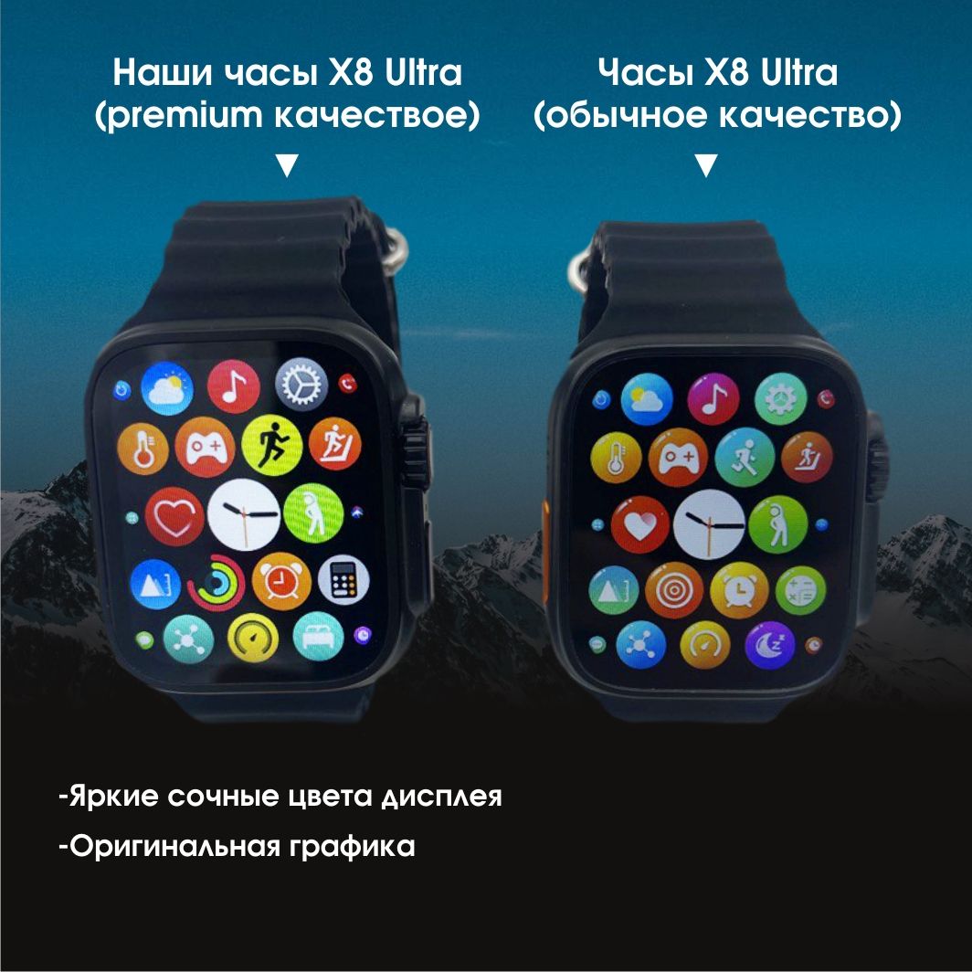Smart Watch X8+ Ultra — это новые умные часы, новинка конца 2022 года. Неслучайно smart часы X8 plus ULTRA стали хитом продаж этого сезона. Стильный дизайн подчеркнет ваш имидж, а богатый функционал, улучшенный процессор, усиленная батарея и превосходный яркий дисплей сделают эти электронные наручные часы вашим незаменимым помощником на каждый день.