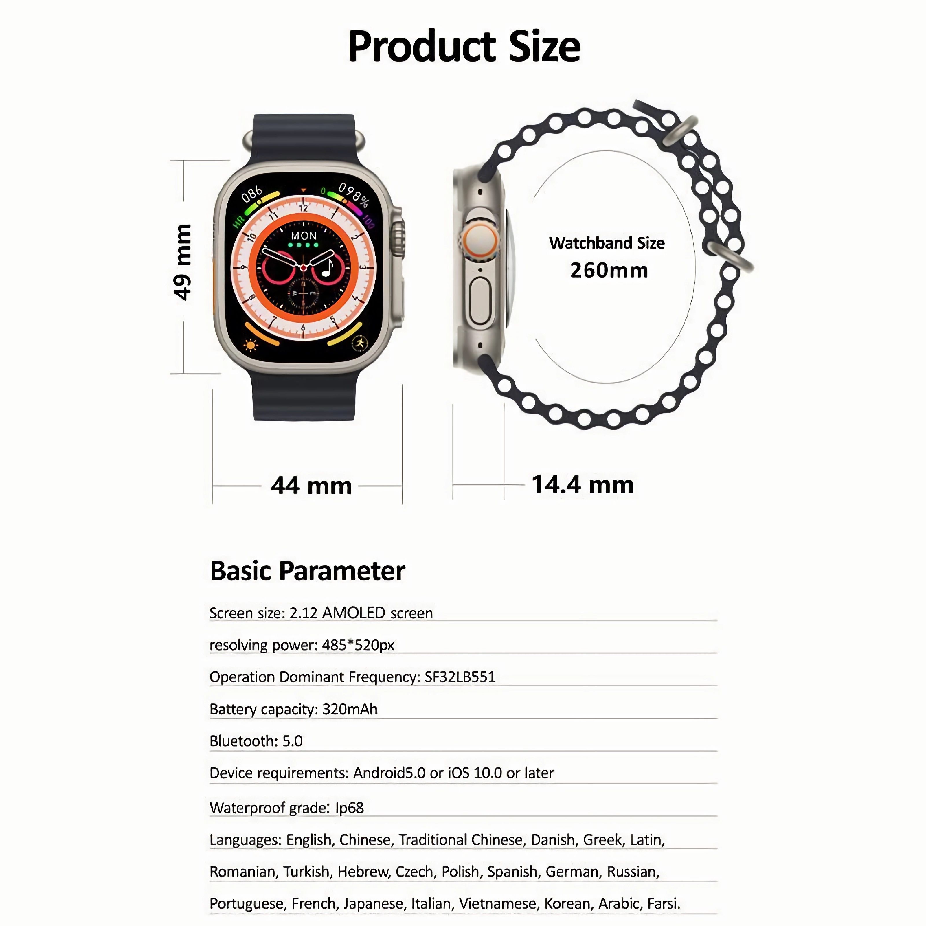 Благодаря своей функциональности и стильному внешнему виду, смарт вотч X8 Ultra станут для Вас надежным партнером по тренировкам в спорте, спутником в путешествиях, а также надежным помощником в бизнесе и повседневной жизни. Ощутите полную поддержку во всех Ваших делах прямо у Вас на руке!