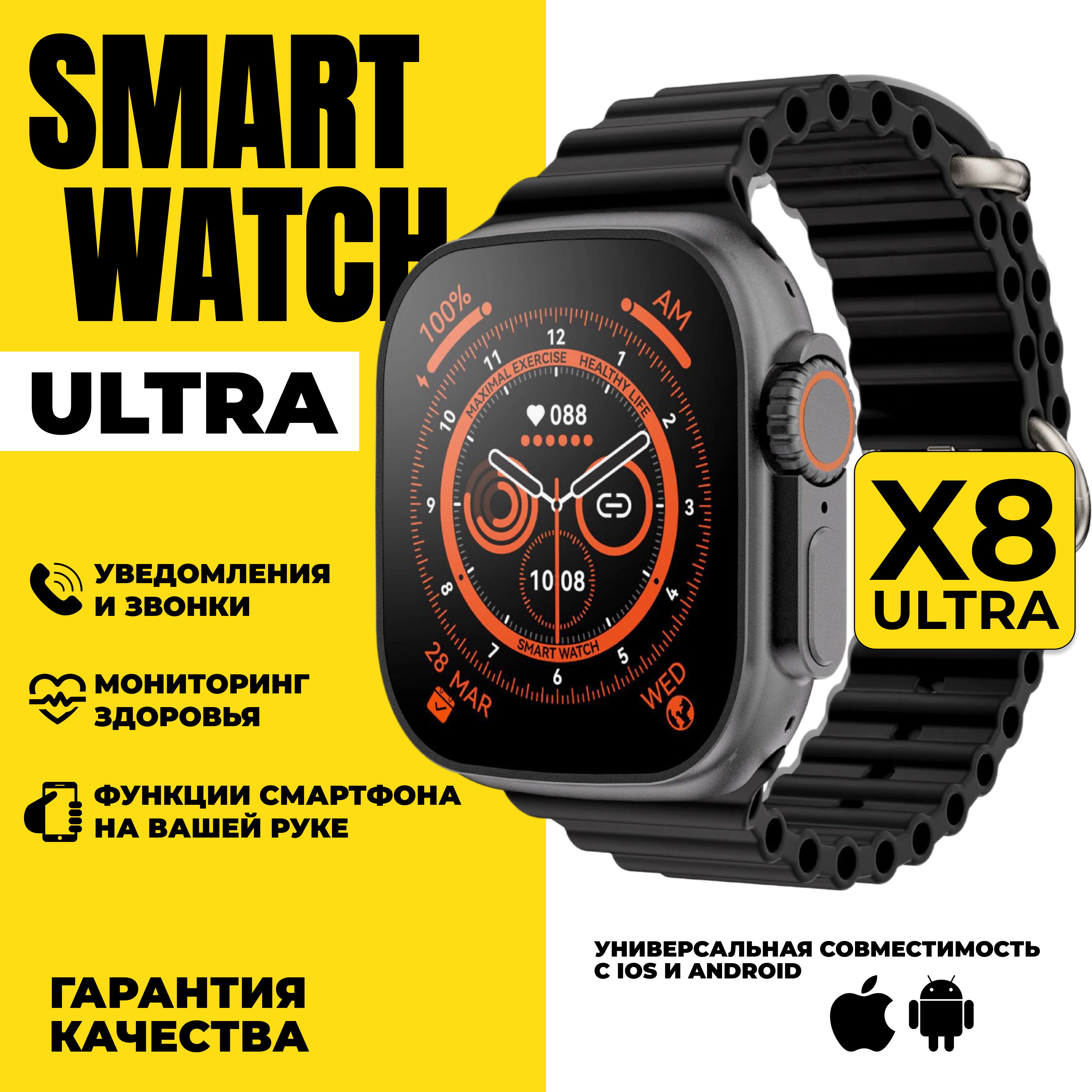 Умные часы Smart Watch X8 Ultra, черный / наручные электронные сенсорные мужские, женские смартчасы / спортивный фитнес браслет с блютуз для смартфона, телефона / шагомер / пульсометр / мониторинг сна