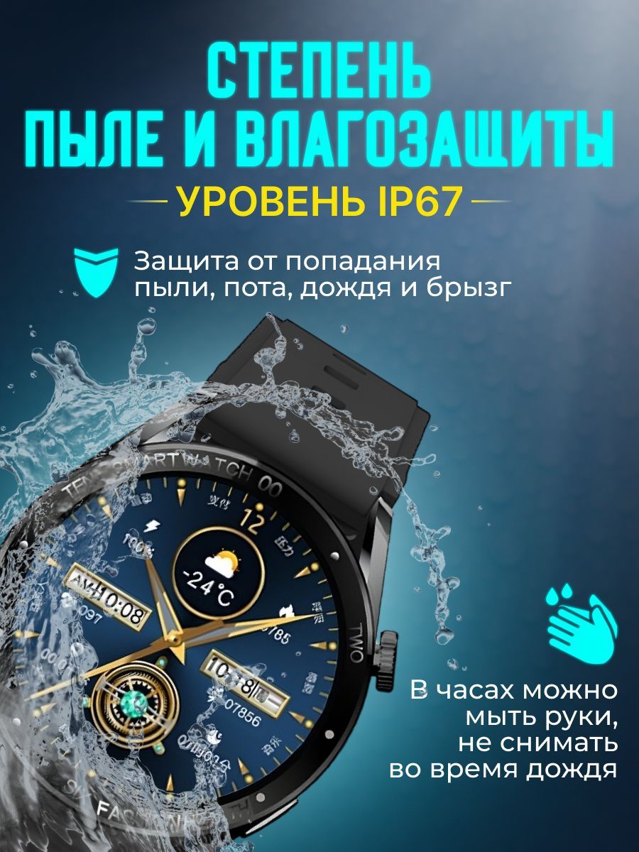 Описание: Умные наручные смарт-часы Smart Watch Pro от SmartFox - это современный электронный гаджет, для мужчин, который может использоваться как классический аксессуар для определения времени, а также как полезный многофункциональный браслет. С его помощью Вы можете: принимать звонки и уведомления текстовых сообщений из СМС, мессенджеров, социальных сетей, от приложений, мониторить собственную активность, управлять музыкальным плеером, пользоваться голосовыми помощниками Siri и Алиса, просматривать погоду, считать в калькуляторе, работать с уведомлениями, вовремя просыпаться по будильнику, управлять камерой на смартфоне и многое другое! Стильный безрамочный сенсорный экран с высоким разрешением и ярким изображением, интуитивное управление с помощью боковой кнопки и колеса, мощный процессор для быстрой загрузки данных и реакции устройства, микрофон и динамик. Смарт часы подойдут спортсменам и посетителям фитнес клубов, йоги, активных хобби (гимнастика, танцы, бег, кроссфит, бокс, велосипед, самокат, горные лыжи, сноуборд и другое); бизнесменам и топ-менеджерам, которым нужно своевременно реагировать; стильным и модным, которым важно подчеркнуть свою индивидуальность; студентам для освоения новых специальностей; школьникам на занятия по физкультуре, для учёбы и общения с друзьями; пожилым и пенсионерам, кому нужен простой и надежный в использовании гаджет. В наших смарт часах мужских круглых для айфона и андроида есть настройка меню. В спортзале Вы можете выбрать тренировку, засекать время на секундомере, переключить песню в спортзале, подсчитывать шаги, отслеживать пульс, фазы сна дома. Согласитесь, это удобно и позволяет внимательно заниматься своим здоровьем и психическим, ментальным состоянием. Во время прогулки и встреч с друзьями удобно реагировать только тогда, когда это действительно нужно, а не рефлекторно доставать смартфон. Кстати, гаджету можно поручить сделать фото в кругу близких. В работе Вотч помогут ответить на запрос коллег, подрядчиков и исполнителей. Ведь, все мы знаем: время - деньги. За рулем особенно пригодится всем, кто устал переключаться на телефон и обратно возвращаться к дорожной обстановке. В походе и велопрогулках, во время туризма часы подскажут сколько времени, а благодаря влаго и пылезащите IP67 они будут исправны даже во время дождя и ветре. На уроках подросток сосредоточится на занятии, ведь можно обойтись без смартфона (как калькулятора) на парте, а в часах - только нужные для предмета функции. Наши круглые смарт часы отличаются от модели Воч 8 (watch 8) и выпускаются в популярных оригинальных цветах: серебристый и черный. В комплекте умных часов мужских круглых 2 ремешка с регулировкой размера по запястью: классический (металлический) и спортивный (силиконовый). В качестве дополнения - есть возможность установить собственное изображение. Вы можете выбрать подходящий оттенок и ремень для создания образа - повседневный, деловой, спортивный дизайн. Цифровой девайс совместим со смартфонами на iOS и Android для использования некоторых приложений, например, Здоровье, iTunes Музыка, Напоминания и другие, что расширяет базовые возможности часов, а значит и пользу для Вас! Подключение осуществляется через Bluetooth 5.0. Часы watch Pro имеют время работы в автономном режиме около 96 часов (4 дня) в зависимости от активности испол