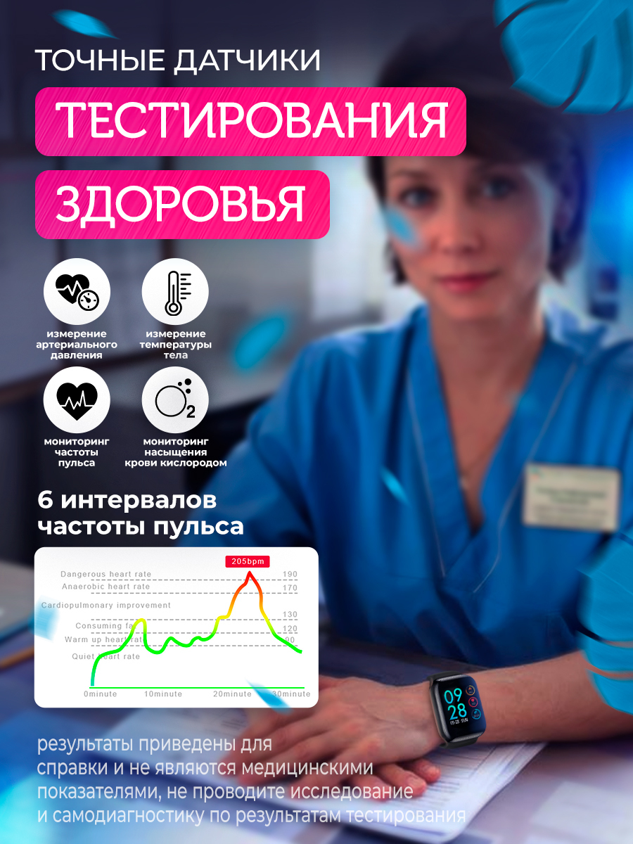 Встроенные датчики: GPS-трекер, Пульсометр, Датчик уровня кислорода в крови, Счетчик калорий, Шагомер, Датчик движения, Датчик артериального давления, Датчик температуры тела