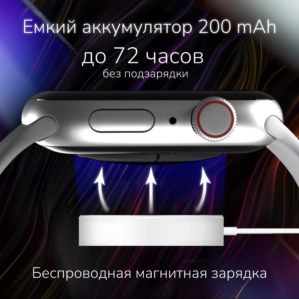 Смарт-часы отлично синхронизируются со смартфоном с помощью приложения Wearfit Pro и позволяют отвечать на звонки, управлять камерой и музыкой, получать уведомления о звонках и сообщениях, оснащены динамиком и микрофоном!Смарт-часы Smart Watch 7Комплексное тестирование здоровьяЭти часы могут отслеживать физическую активность, следить за пульсом, измерять давление, отслеживать качество сна и помогут при занятии: спортом, бегом, ходьбой.Смарт-часы Smart Watch 7Безрамочный дисплей с яркими цветамиЭксплуатация часов сопровождается отзывчивым сенсором и качественной синхронизацией между подключаемыми устройствами.Смарт-часы Smart Watch 7До 72 часов без подзарядкиЕмкий аккумулятор 280 mAh.