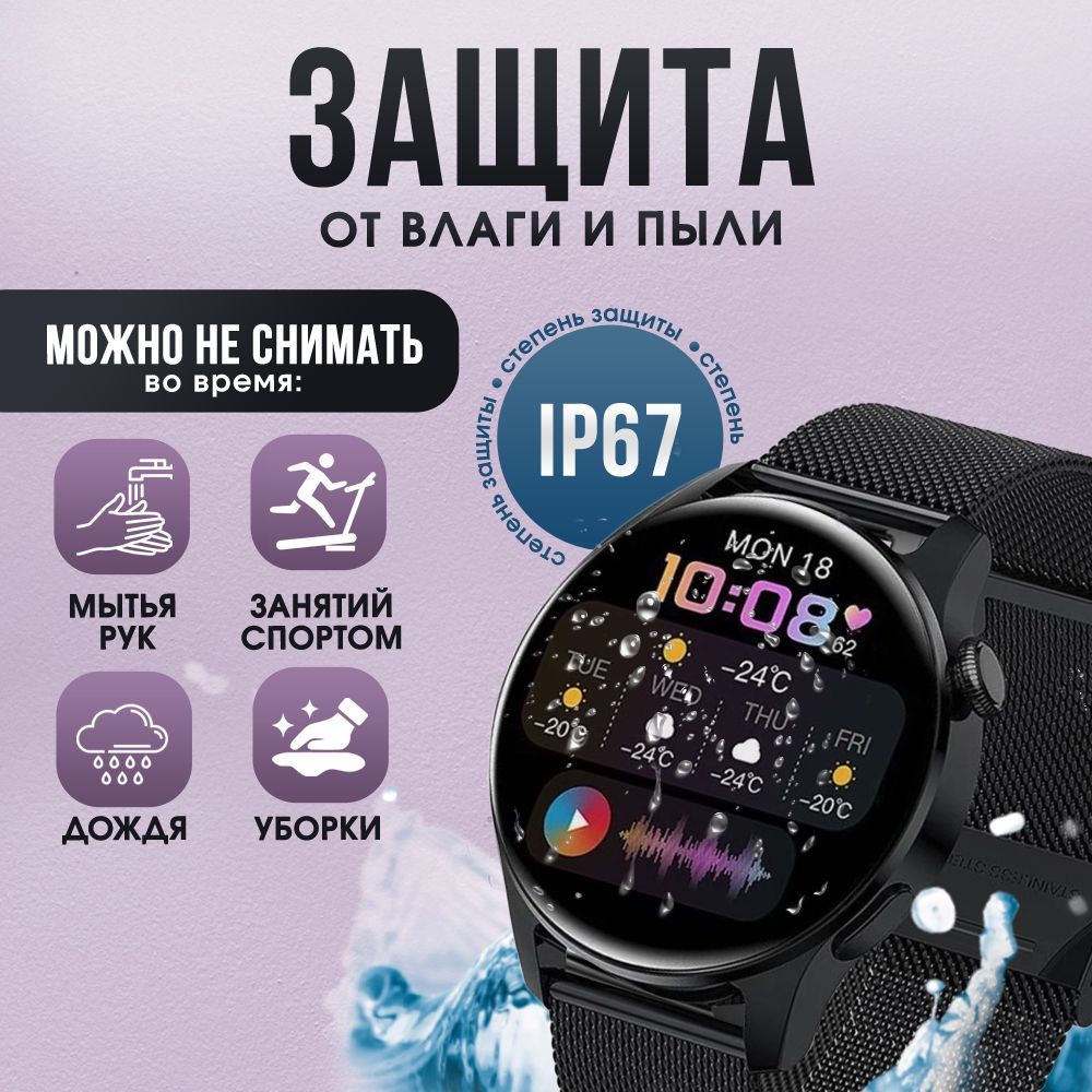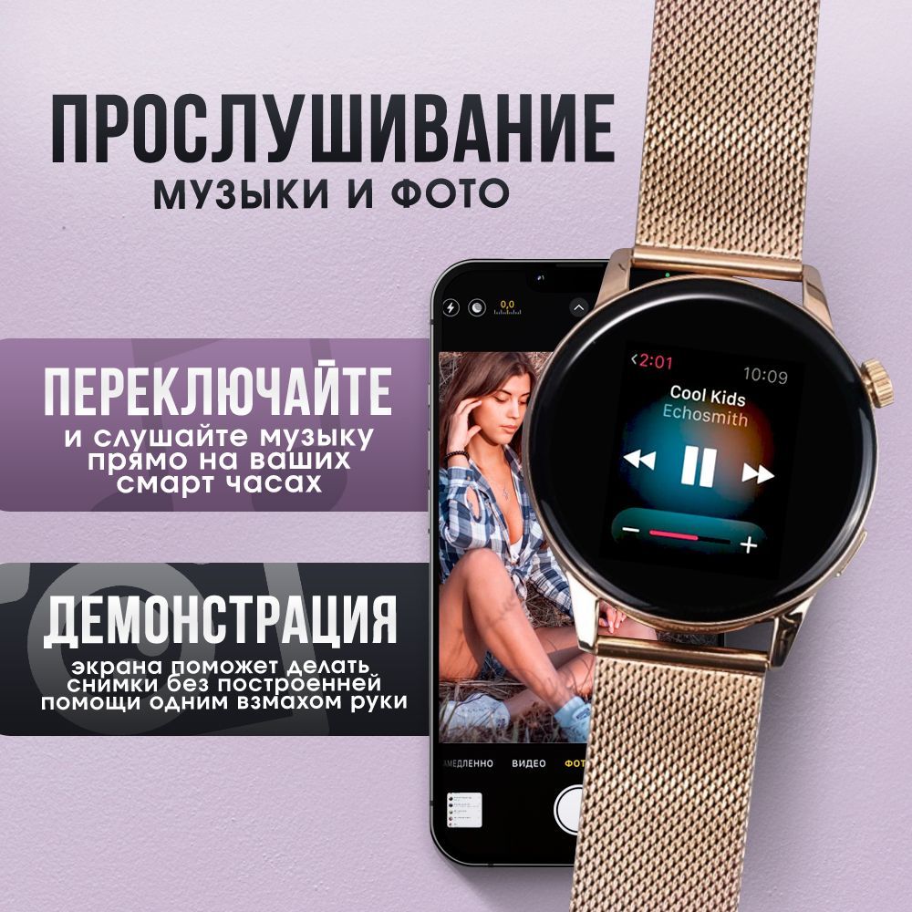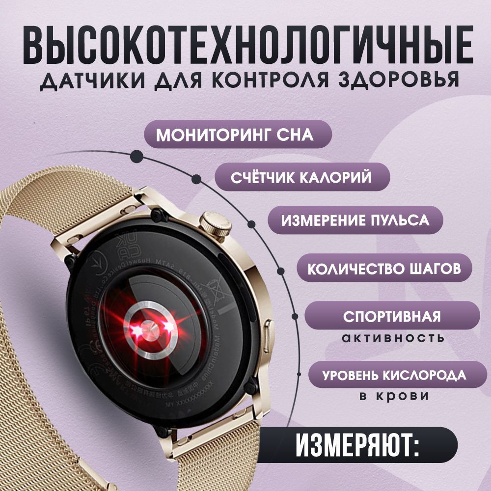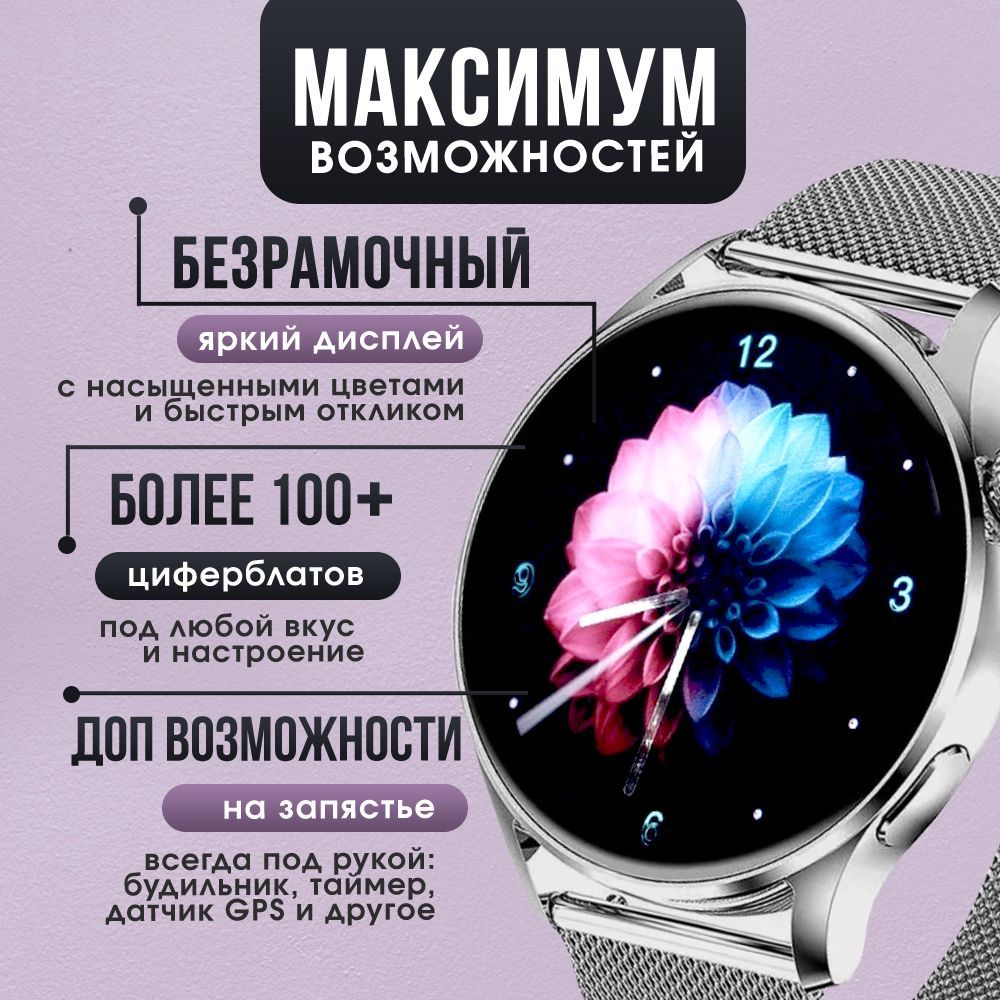 В комплекте с часами вы получаете беспроводную магнитную зарядку, инструкцию и металлический ремешок. Плотная застежка и качественные материалы, гарантируют удобство и комфорт при ношении часов.Сложности с настройкой?Если у вас возникли вопросы, ознакомьтесь с инструкцией по подключению часов или свяжитесь с нами через чат продавца.