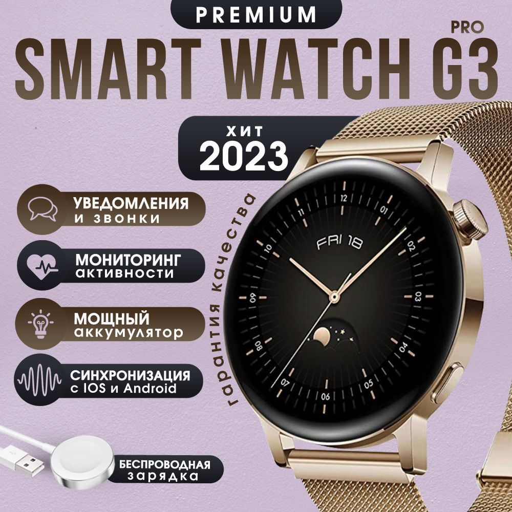Описание: Smart Watch G3 ProУмные часы G3 Pro это новинка с улучшенным динамиком и более быстрым процессором. Smart Watch G3 Pro отлично подходят для женщин. Отзывчивый сенсор и качественная синхронизация со смартфонами с помощью Bluetooth 5.2 порадуют своей точностью и стабильным соединением. Меню часов полностью на русском языке ,теперь пользоваться часами ещё удобнее.Быстрый заряд , долгое использование!Часы имеют емкость аккумулятора 260 mah, что позволяет работать им в активном режиме до 72 часов , а время автономной работы составляет до 7 дней! Быстрая беспроводная зарядка позволит полностью зарядить батарею менее чем за час.Следи за здоровьем и не только!Smart Watch G3 Pro имеют множество встроенных функций :