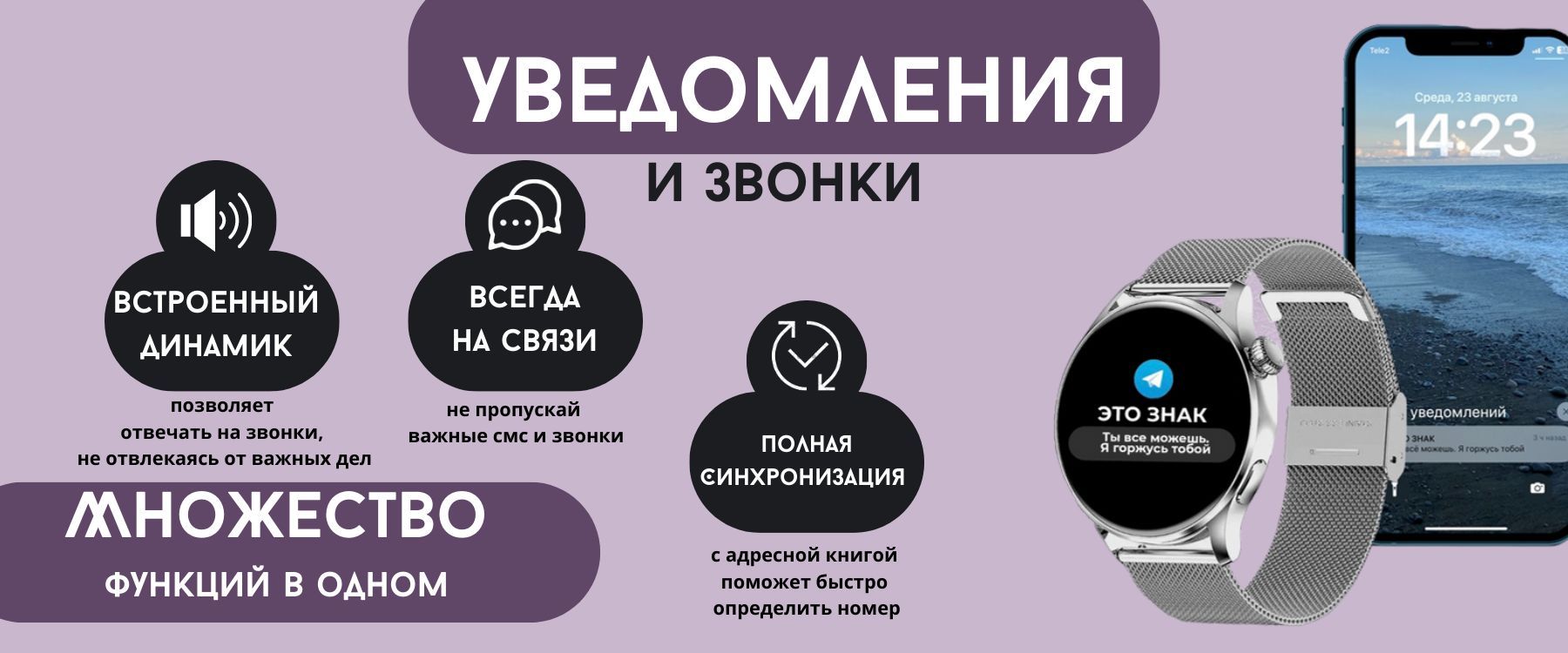 • Уведомления о входящих звонках и сообщениях