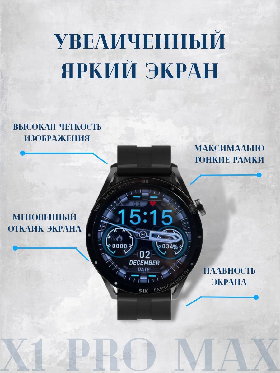 Описание: Smart Watch x1 pro max Умные часы x1 pro max это новинка с улучшенным динамиком и более быстрым процессором. Smart Watch x1 pro max отлично подходят как для мужчин, так и для женщин. Отзывчивый сенсор и качественная синхронизация со смартфонами на платформах Android или iOS с помощью Bluetooth 5.2 порадуют своей точностью и стабильным соединением. Меню часов полностью на русском языке ,теперь пользоваться часами ещё удобнее.Быстрый заряд , долгое использование!Часы имеют емкость аккумулятора 240 mah, что позволяет работать им в активном режиме до 72 часов , а время автономной работы составляет до 7 дней! Быстрая беспроводная зарядка позволит полностью зарядить батарею менее чем за час.Следи за здоровьеми не только!Smart Watch x1 pro max имеют множество встроенных функций :