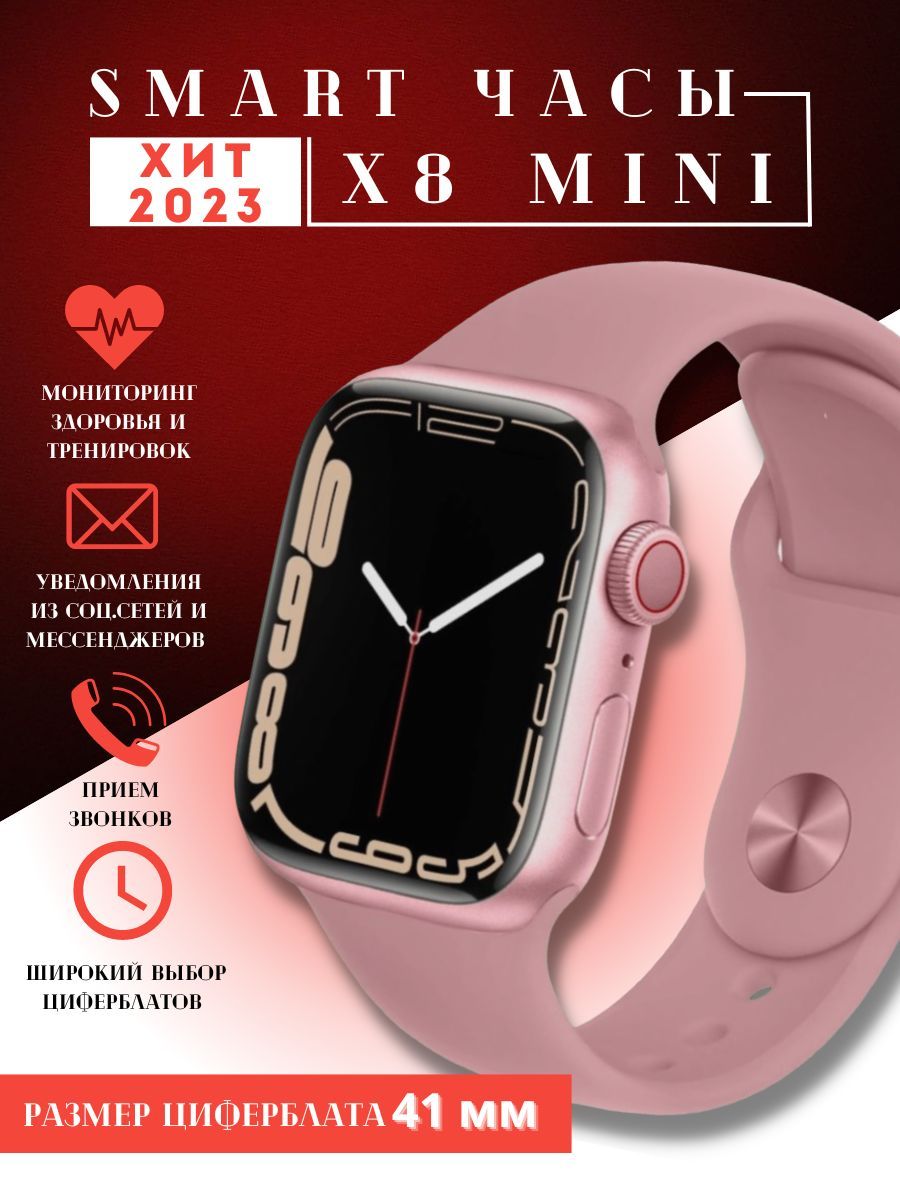 Умные часы TechnoGrand Smart Watch x8 mini, смарт часы, gps , наручные смарт часы, женские, мужские, детские, фитнес браслет, сенсорный экран, шагомер, электронные часы, спортивные, унисекс, черные, Bluetooth, Android, IOS, 41mm, Розовый