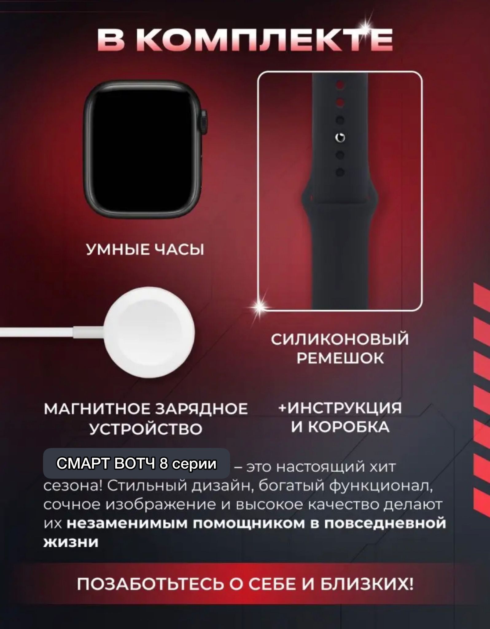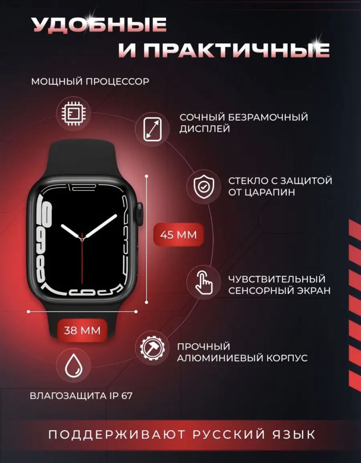 Умные часы TWS PRO Смарт часы Smart Watch 8 серии "LN 8" HD+, 45mm, черный