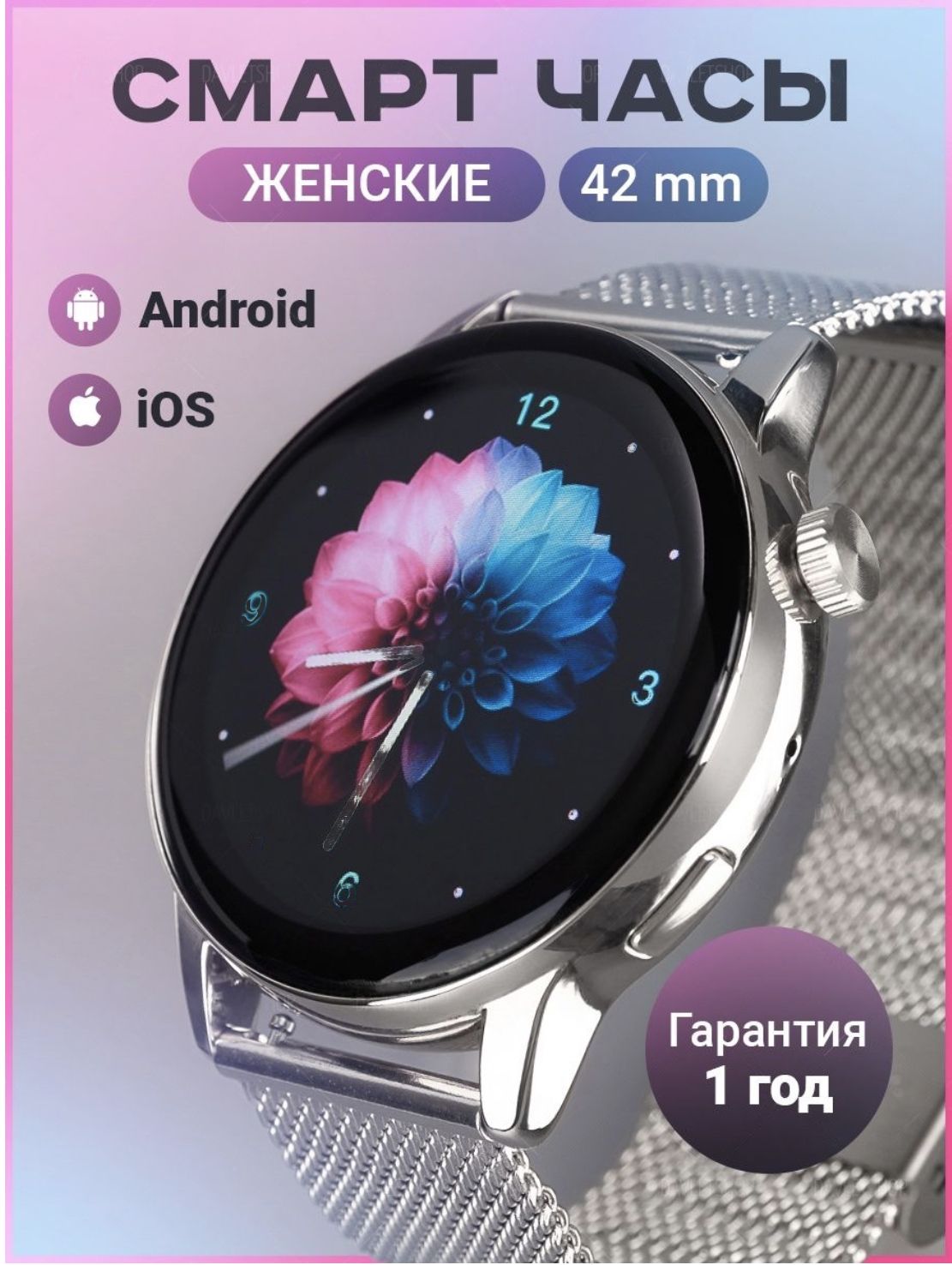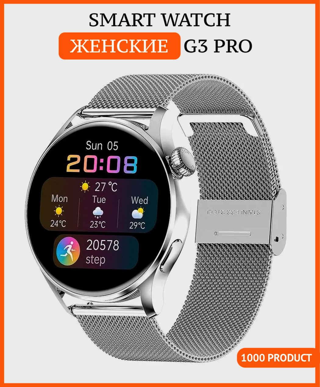 Умные часы Умные часы, женские наручные круглые, Smart Watch G3 Pro Wireless charging, 42mm, Серебристо-белый
