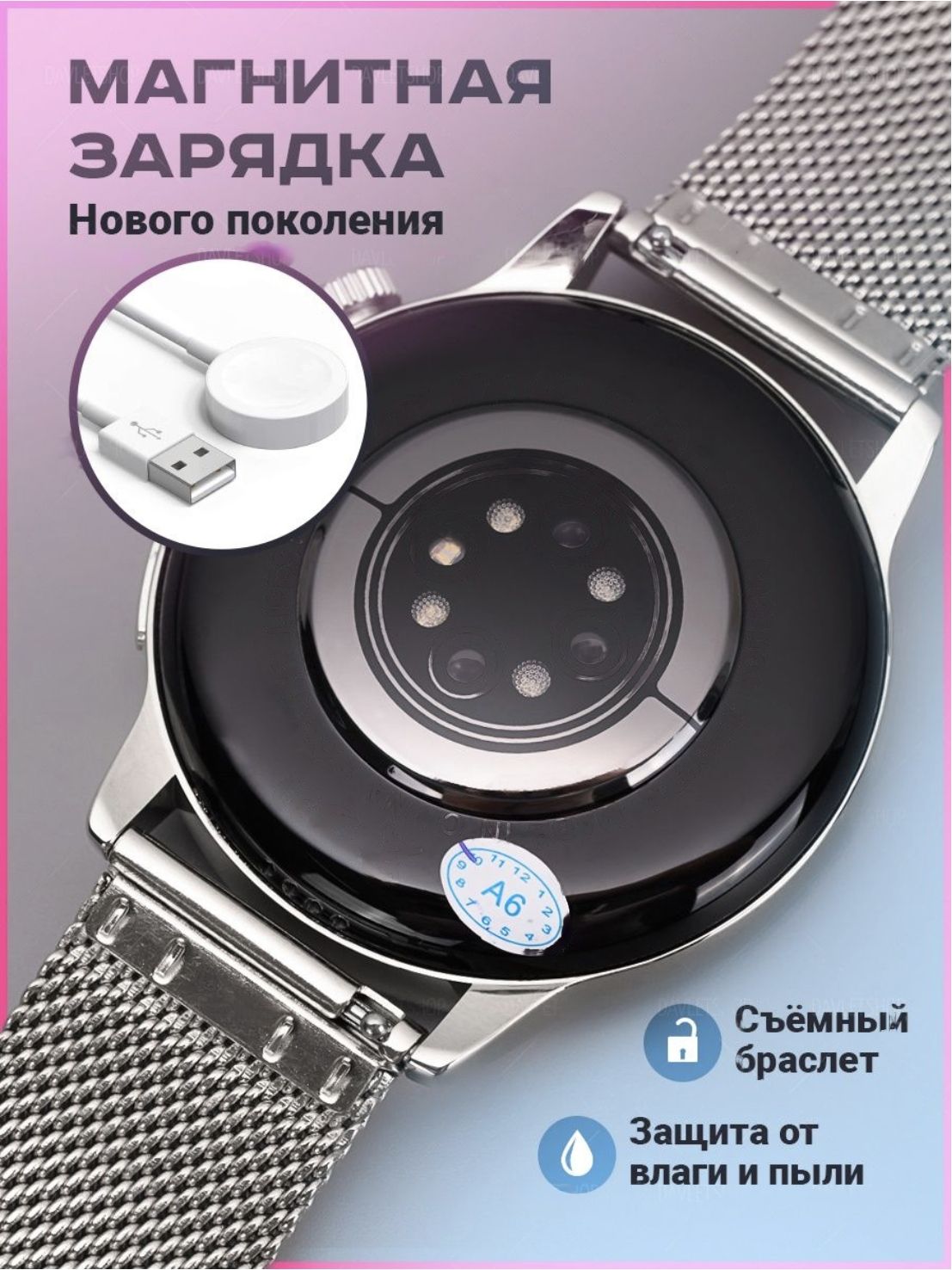 Питание Магнитная зарядка; USB; от аккумулятора