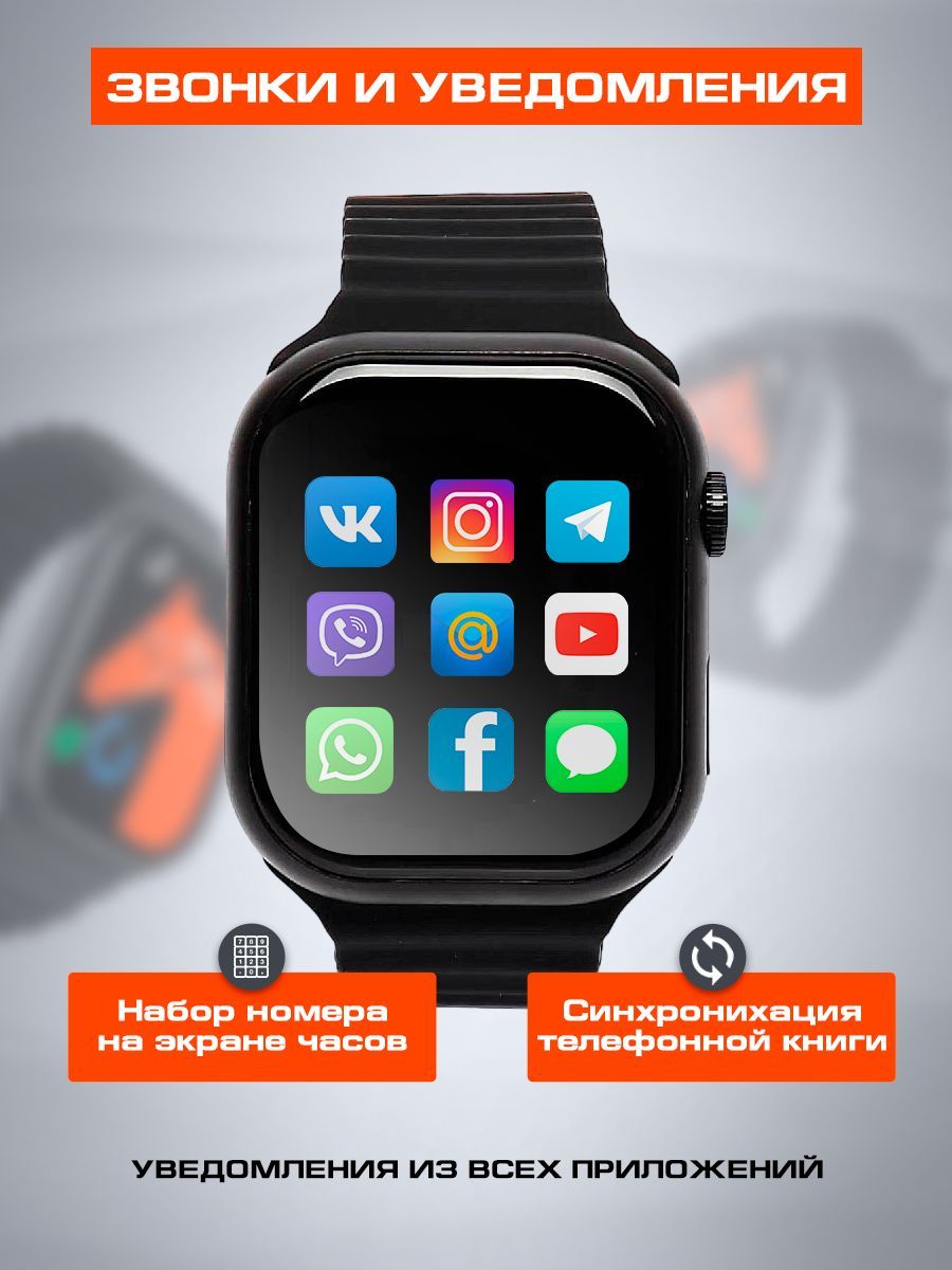 • К данной модели часов подходят и другие ремешки от Smart Watch размером 42-44mm Зарядка• Компактная зарядка в комплекте позволит легко зарядить часы без кабелей, просто положив их на зарядное устройство ЗвонкиОтображают имя из контактов