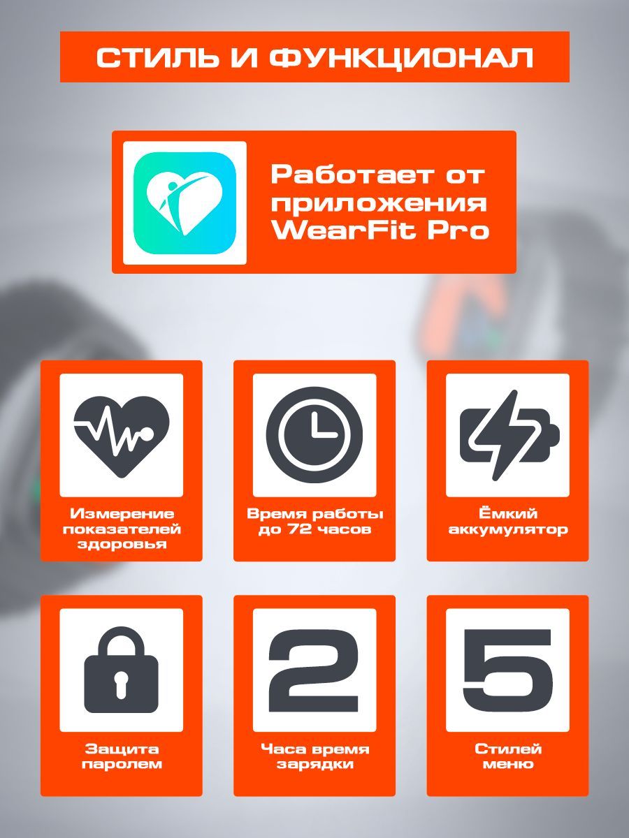 • ПодключениеРаботают через приложение WearFit Pro, в котором можно скачать более 500 бесплатных циферблатов и анализировать показатели тренировок