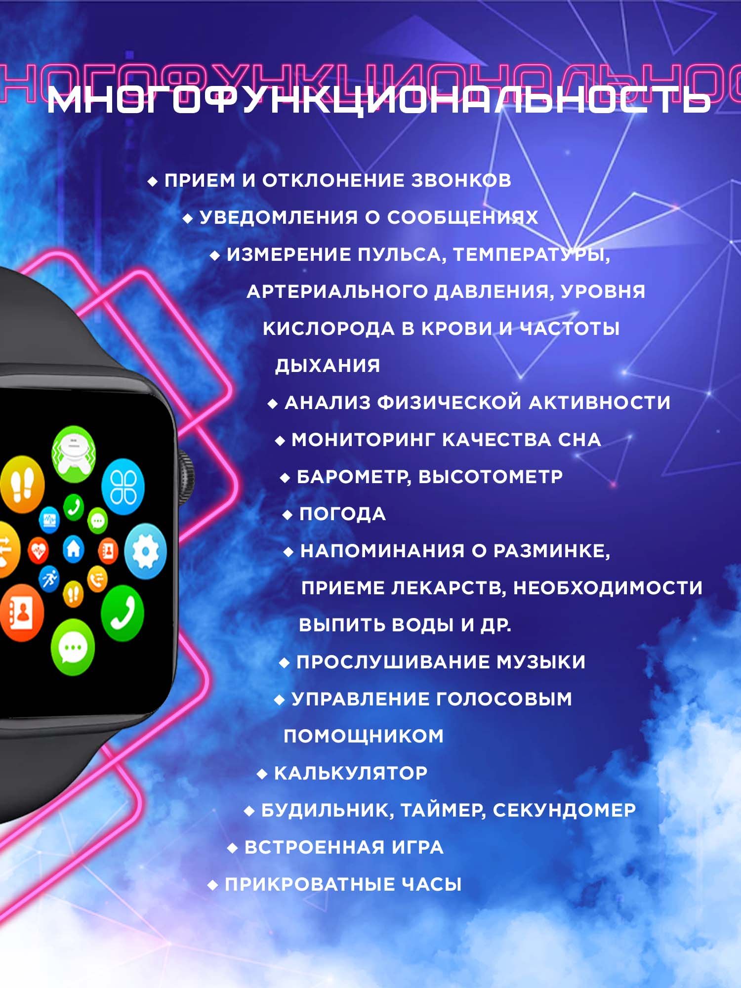Описание: Часы Smart Watch X8 PRO серии 8 - Хит сезона. Умные часы премиальной серии X8 PRO на русском языке - это одни из самых продвинутых и качественных смарт-часов с беспроводной зарядкой, прямоугольным циферблатом и большим экраном 45 мм.