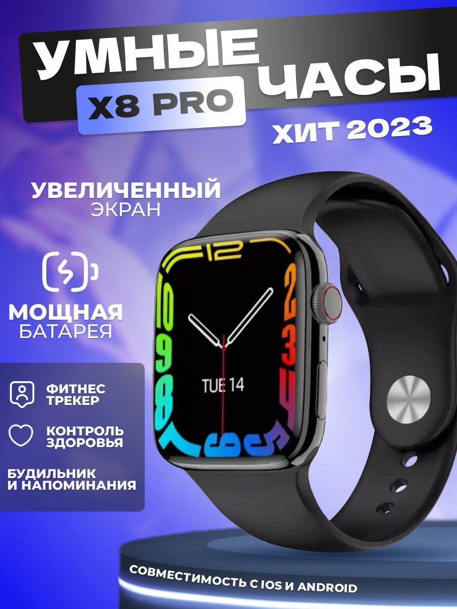 Умные часы X8 PRO / Smart Watch 8 серия / мужские, женские, детские 45 мм / Смарт-часы 8 Series / для детей c gps, телефоном / Смарт вотч, c сенсорным экраном / Электронные, наручные / Фитнес браслет для IOS, Android / Шагомер,Bluetooth / Черные