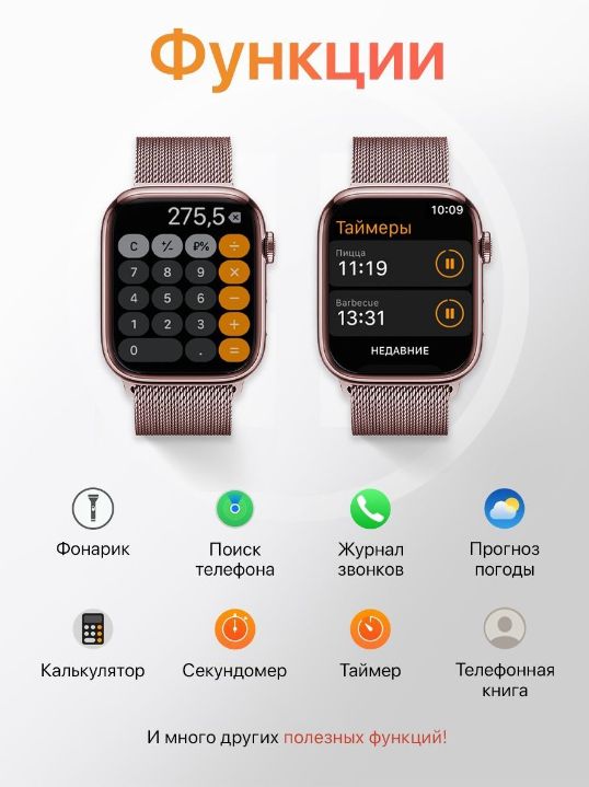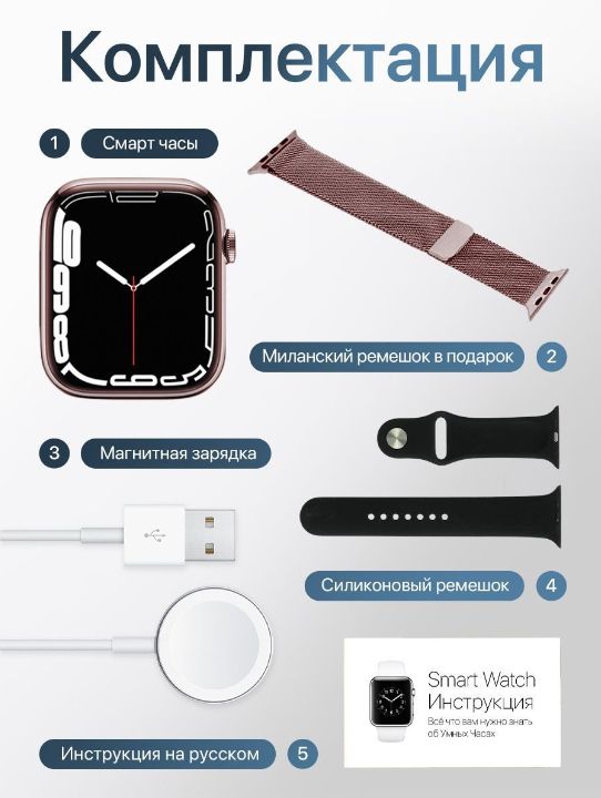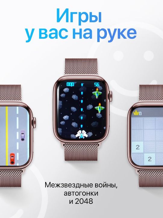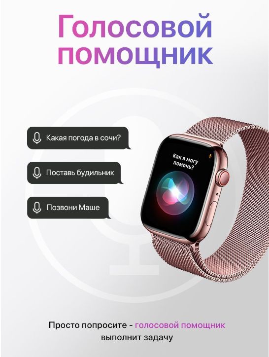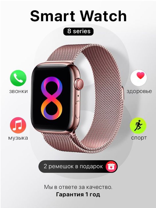 Описание: Умные часы Smart Watch 8 Новые умные смарт часы Smart Watch 8 серии - это незаменимая электроника для современного человека. Часы наручные поддерживают вызов по Bluetooth, оснащены динамиком и микрофоном, что позволяет совершать звонки непосредственно через часы вотч и получать уведомления. Часы женские наручные легко подключаются к вашему смартфону на базе андроид(Android) или иос (IOS). Смарт часы 8 подойдут каждому: силиконовый ремешок (для занятия спортом) и металлический магнитный браслет (для стильного образа) регулируется по запястью. Часы электронные имеет функцию голосового помощника, возможность установки пароля, способность изменения заставки дисплея. В смарт часах встроен динамик и микрофон, что позволяет принимать и отклонять звонки, а так же разговаривать по ним. Также умные часы подходит для девочек и мальчиков подростков и школьников. Smart watch x8 - это полноценный стильный фитнес-браслет: часы шагомер, фитнес-трекер, браслет здоровья(часы с измерением давления и пульса), часы с секундомером, счетчик калорий, мониторинг сна, кардио(велосипедные аксессуары), тренировки, игры. Smart-часы водонепроницаемые, но отлично защищены от влаги и пыли. Часы мужские, женские, детские надежные: корпус выполнен из высококачественного алюминиевого сплава, а циферблат из ударопрочных материалов. Гаджеты для телефона представлены в нескольких цветах: золотые, розовые, серые и черные. Часы наручные для женщин, часы наручные для мужчин подарок на любой праздник: День рождения, 14 февраля, 23 февраля, 8 марта.