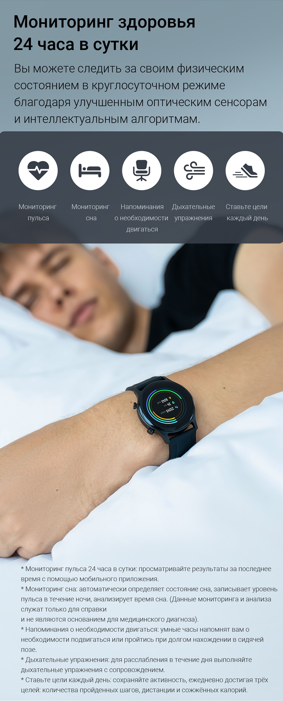Следите за своим физическим состоянием 24 часа в сутки с помощью обновленного оптического датчика сердечного ритма и интеллектуального алгоритма контроля здоровья.
