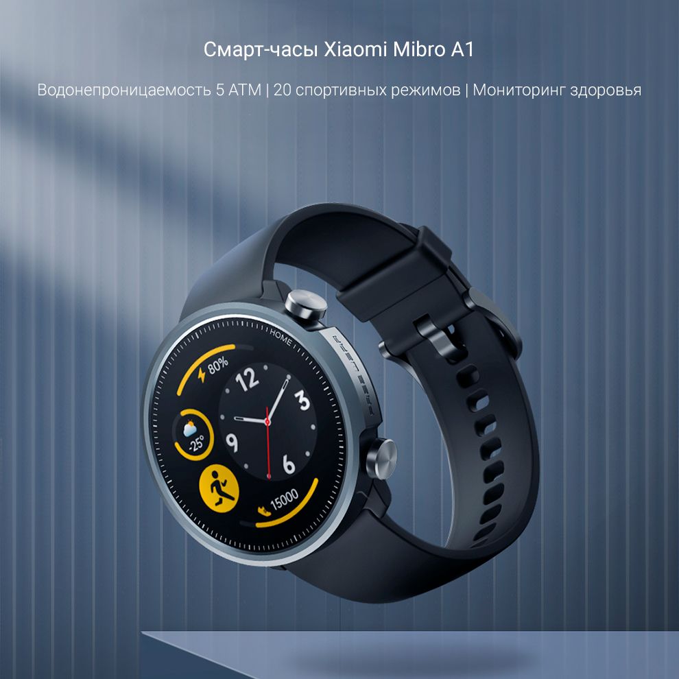 Описание: Смарт-часы Xiaomi Mibro A1Умные часы Mibro A1 обладают легким и тонким корпусом, за счет чего почти не ощущаются на руке. Они имеют водонепроницаемость, позволяют выбирать циферблат и использовать их в течение 10 дней без подзарядки. Предусматривается полноценный мониторинг здоровья и 20 спортивных режимов. Живите, занимайтесь спортом и творите вместе с Mibro A1Толщина корпуса всего 5 ммДевайс оснащен тонким корпусом – всего 5 мм. Визуально часы смотрятся безупречно.Мониторинг сердечного ритмаРитм сердцебиения – важнейший показатель здоровья. Ваши смарт-часы постоянно мониторят этот параметр и предупреждают вас при отклонениях от нормы.Измерение уровня кислорода в кровиMibro A1 постоянно отслеживает уровень SpO2 в крови. Ваше здоровье под надежной защитой.10 дней автономной работы при ежедневном использованииЕсли смарт-часы будут работать постоянно, то заряда их аккумулятора хватит на 10 дней. При умеренном использовании автономность составит 45 дней.Защита от воды 5 АТМКорпус гаджета обладает водонепроницаемостью по стандарту 5 АТМ. Занимайтесь плаванием и следите за своими спортивными успехами вместе с Mibro A1 от Xiaomi.20 спортивных режимовУстройство предлагает 20 режимов тренировок: от бега на открытом воздухе до настольного тенниса. Ваши достижения в спорте будут зафиксированы смарт-часами.Отслеживание качества снаПосмотрев на качество сна, отслеженное Mibro A1, можно удивиться тому, насколько этот показатель влияет на наше здоровье. Умные часы станут вашим верным помощником по улучшению самочувствия.Контроль давленияMibro A1 поддерживают мониторинг давления и уровня стресса. Девайс предлагает эффективные дыхательные упражнения, после которых вы почувствуете себя лучше.Большой выбор циферблатовСмарт-часы Xiaomi предлагают большой выбор красивых циферблатов на каждый день. Отражайте свою индивидуальность на экране Mibro A1.