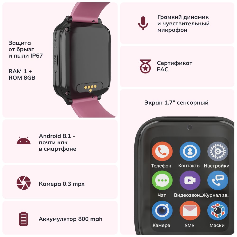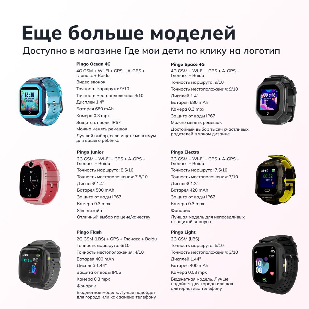 Описание: Где Мои Дети Pingo Pro 4G — флагманская модель серии детских умных GPS часов собственной разработки с геолокацией на основе GPS, Глонасс, Baidu, WiFi и сотовых вышек (LBS), оснащенных голосовым помощником Марусей и Whatsapp с функцией телефона. От производителя с 5000+ отзывов на всех маркетплейсах!