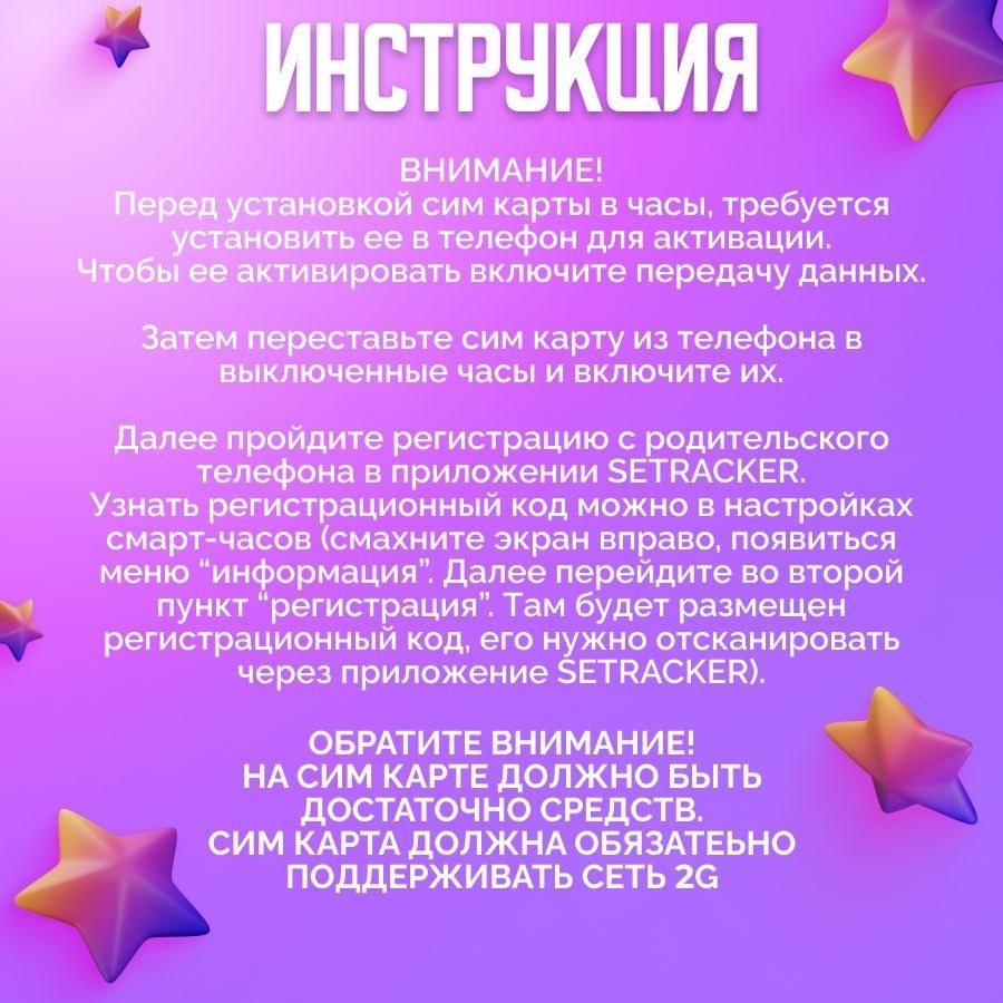 Описание: Инструкция Часы поддерживают симкарты 2G, предпочтительнее операторы сотовой связи МТС, Билайн и Мегафон.
