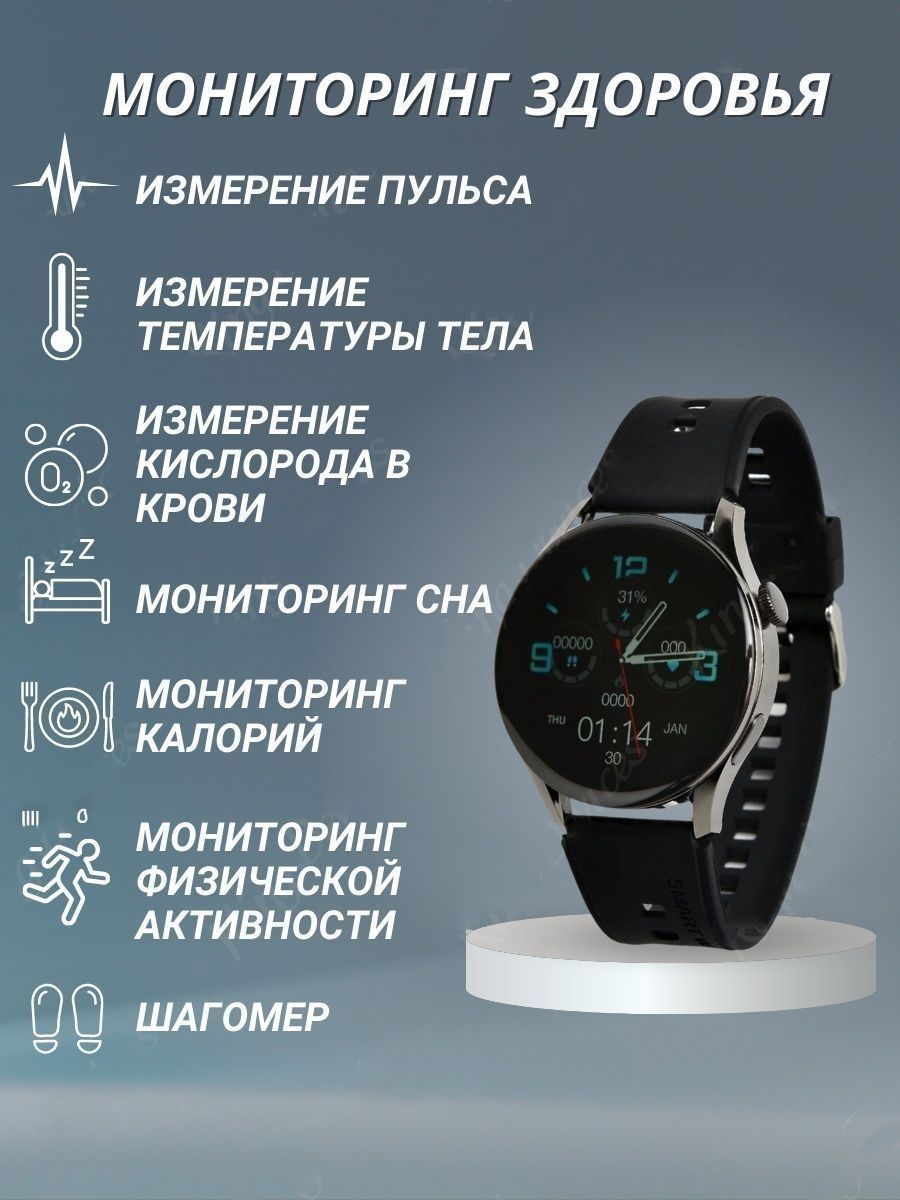 Умные часы помогают контролировать такие функции как: длительность сна и его качество, давление, количество пройденных шагов и расстояние, пульс, количество сожженных калорий.